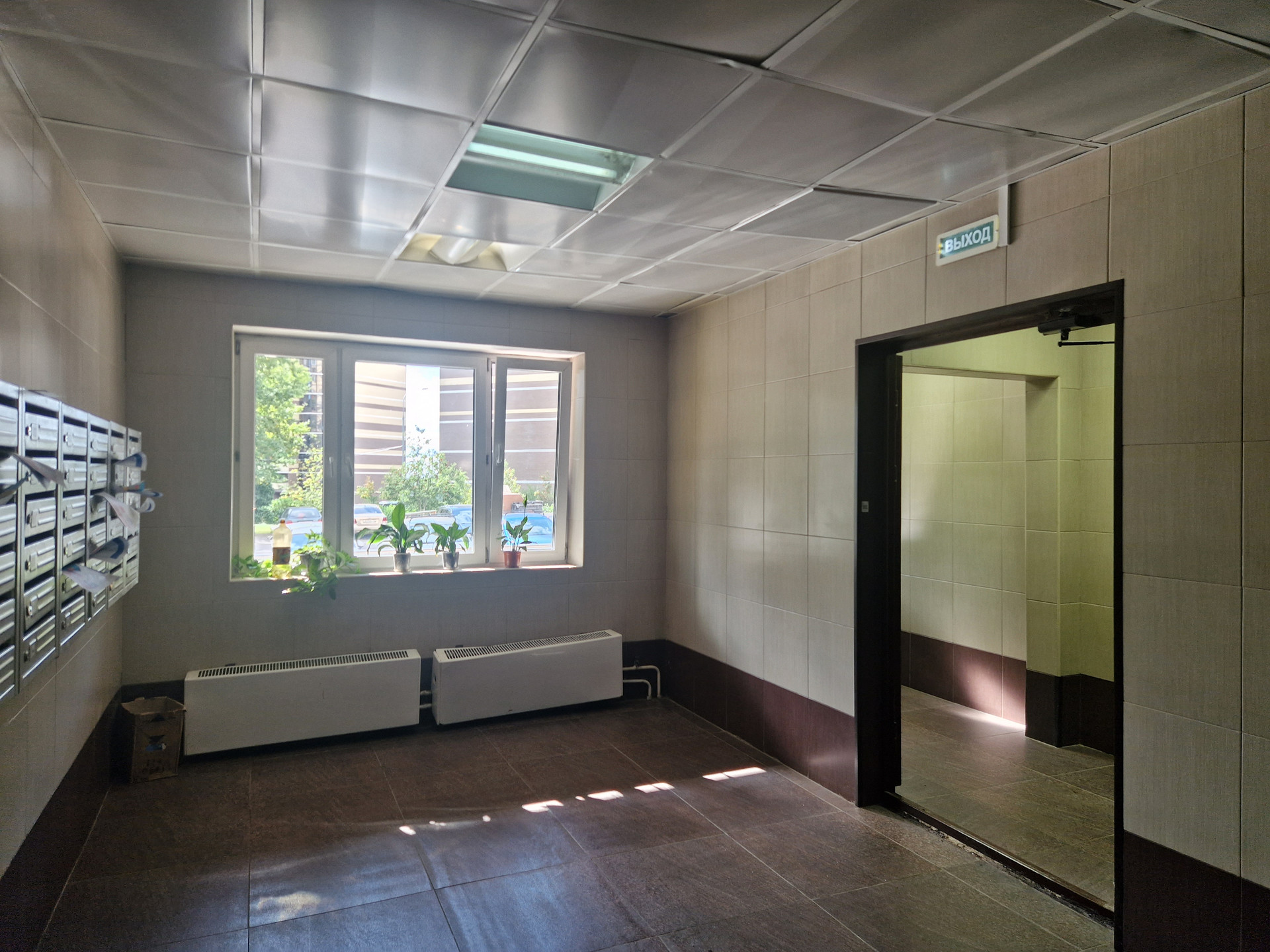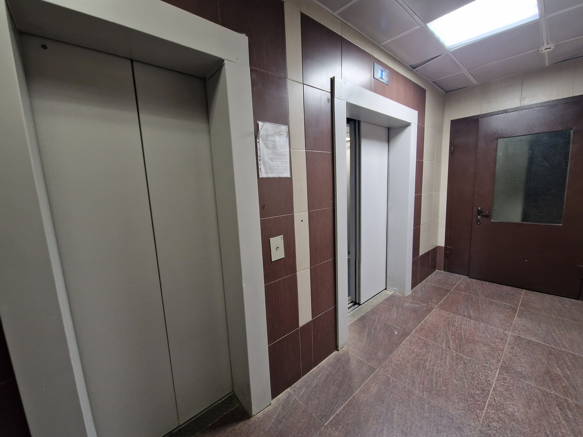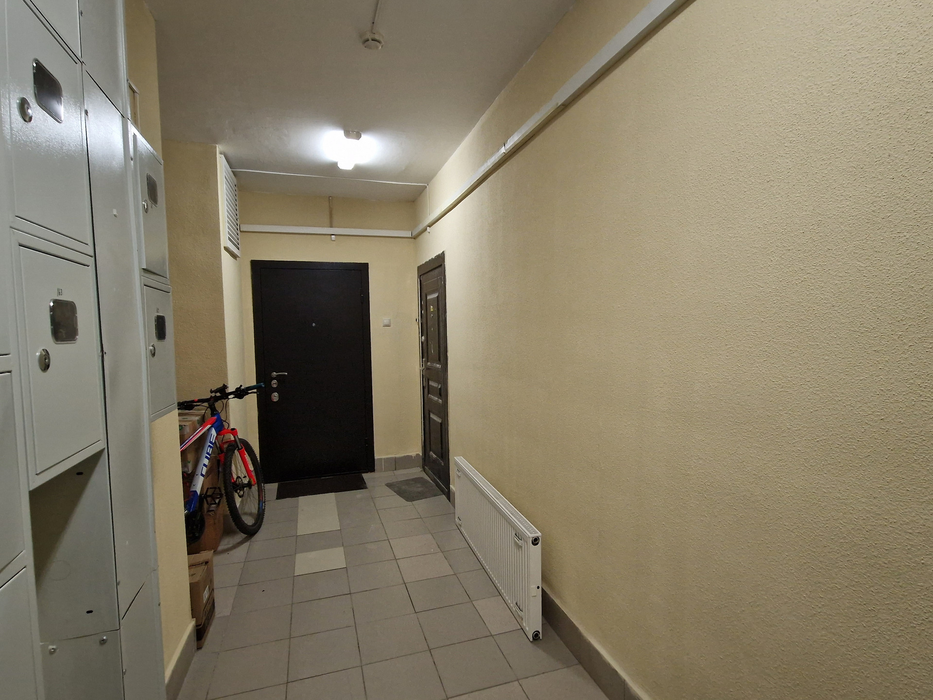 Чистый подъезд просторный тамбур на четыре квартиры, два лифта.