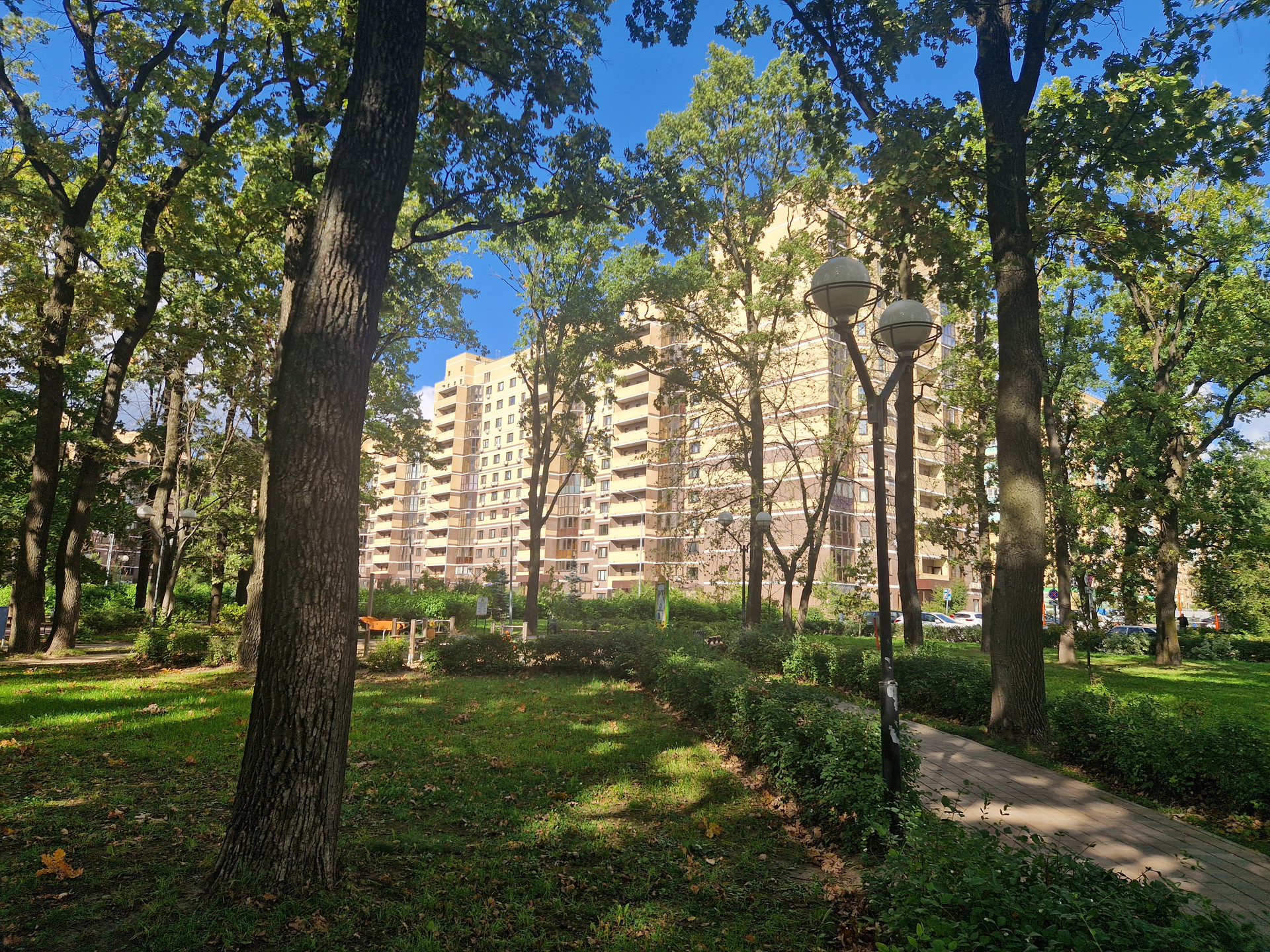Во дворе расположена уникальная дубовая роща с просторной детской площадкой и зоной отдыха.