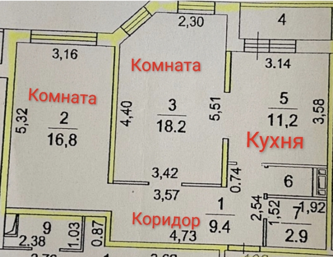 Квартира имеет очень удобную планировку (см. план на фото):  кухня (11,1 кв.м.) с застекленной лоджией,   гостиная с полуэркером ( (18,2 кв.м.), комната  (16, 8 кв.м.) , раздельный санузел. При желании можно спланировать современную евротрешку:  кухню-гостиную и две спальни. Такая планировка позволяет комфортно проживать семье с детьми.