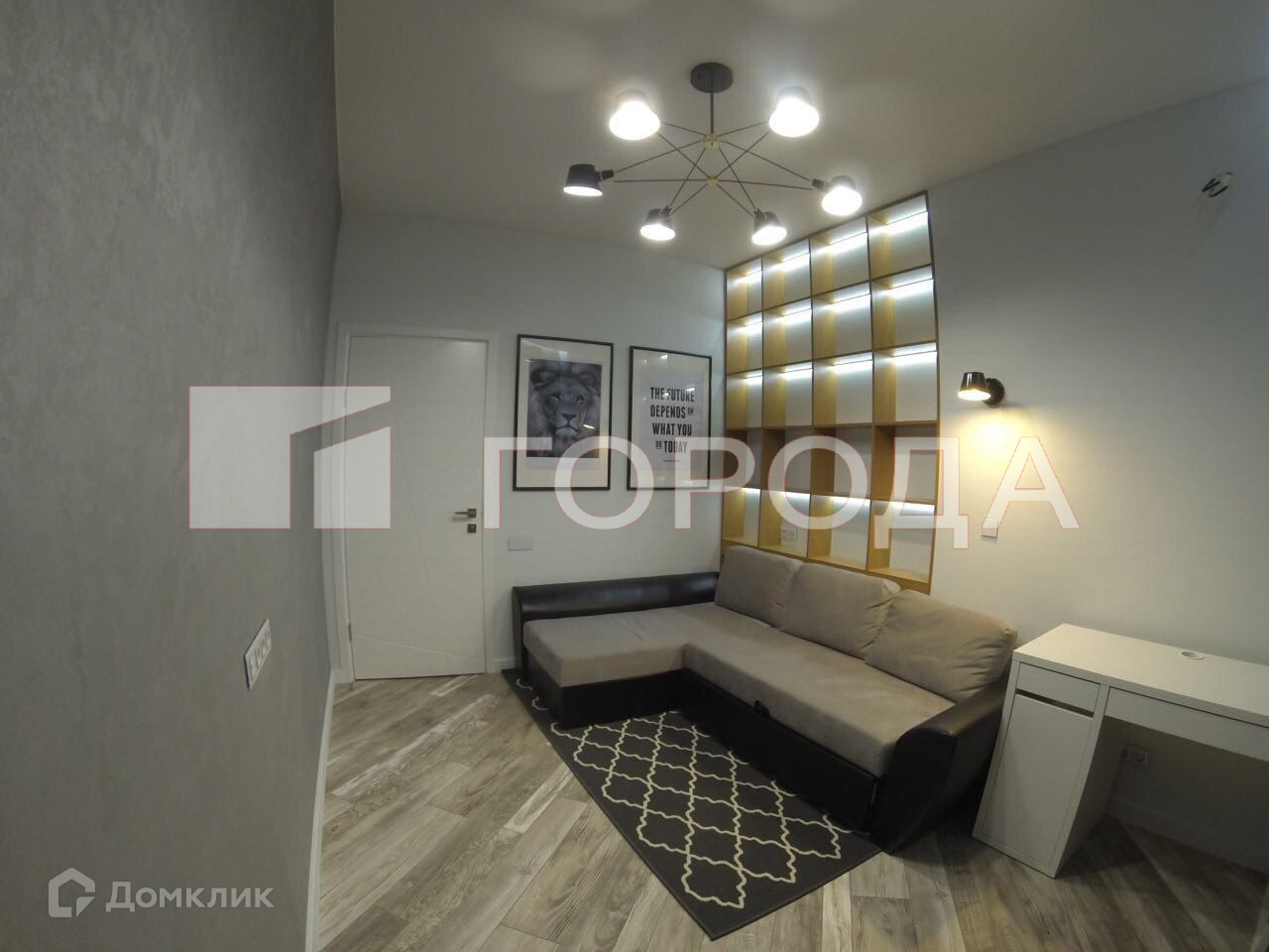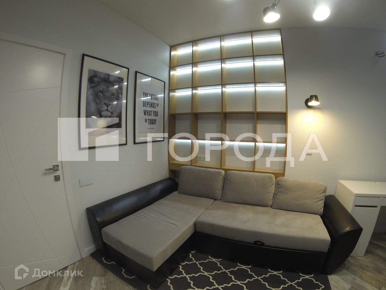 ■ Спальня: большой и удобный диван, рабочий стол и кресло, встроенная ниша с полками и подсветкой