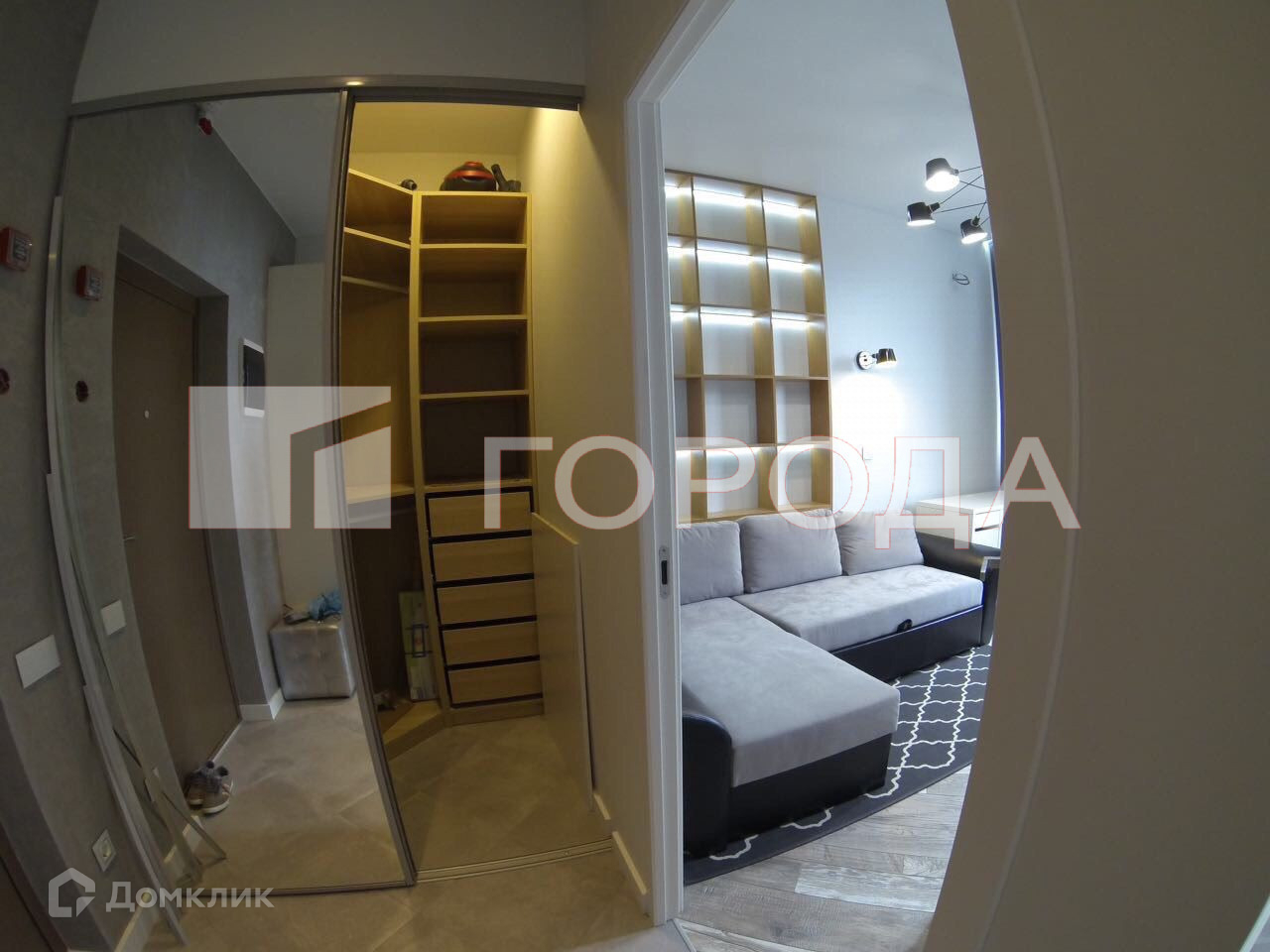 ■ Прихожая: дополнительный шкаф для хранения вещей с зеркалом, уютный пуфик