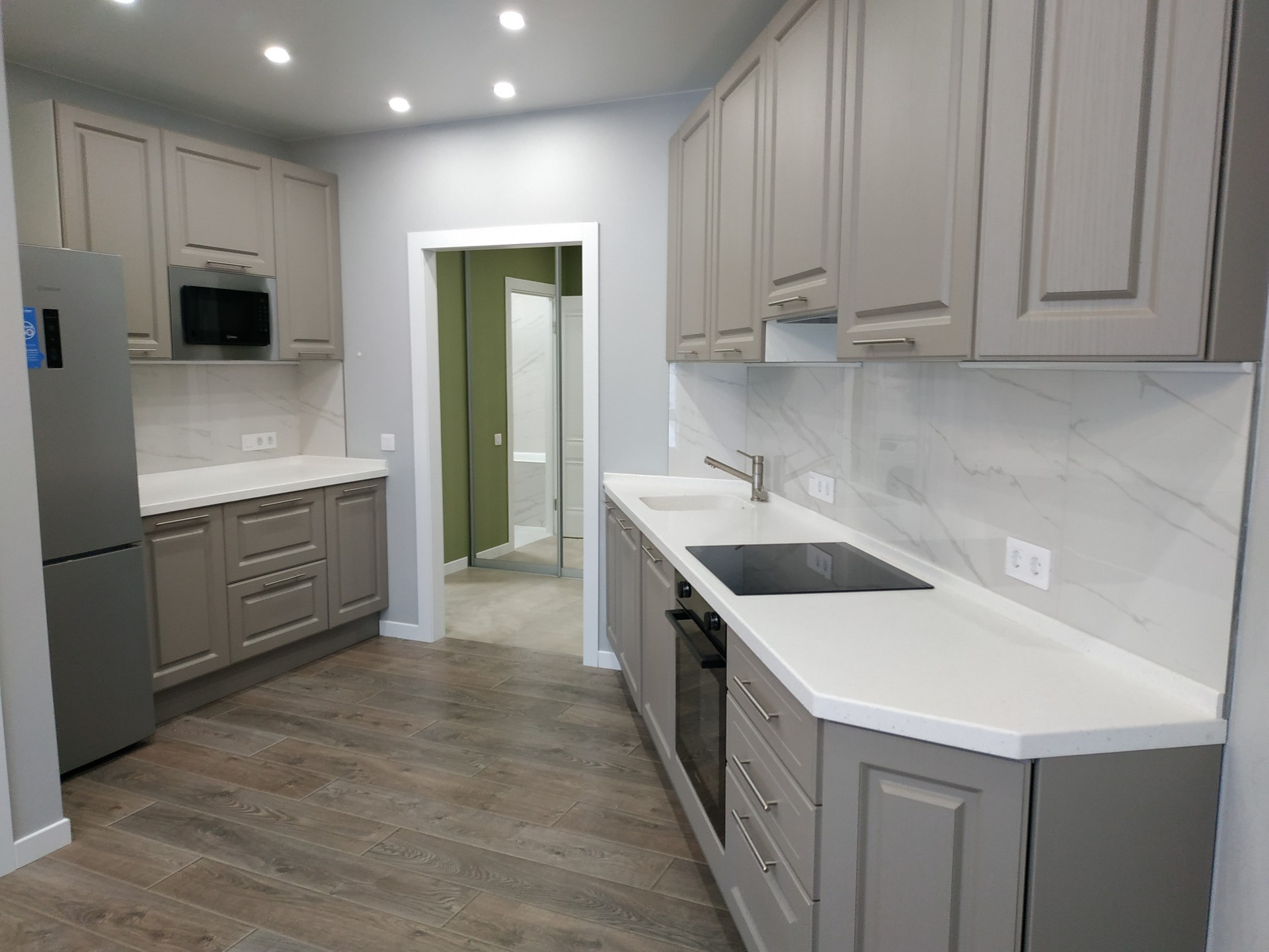 Вся сантехника и инженерные коммуникации иностранного производства являются гарантом спокойной жизни без головной боли и сюрпризов и прослужат ещё не один десяток лет. Кухня-гостиная 23 метра, кухонный гарнитур фирмы Мария столешницы из искусственного камня, полноценная спальня с гардеробной, теплые полы в прихожей и в су, также в квартире панорамные окна в пол, за счёт чего квартира очень светлая.