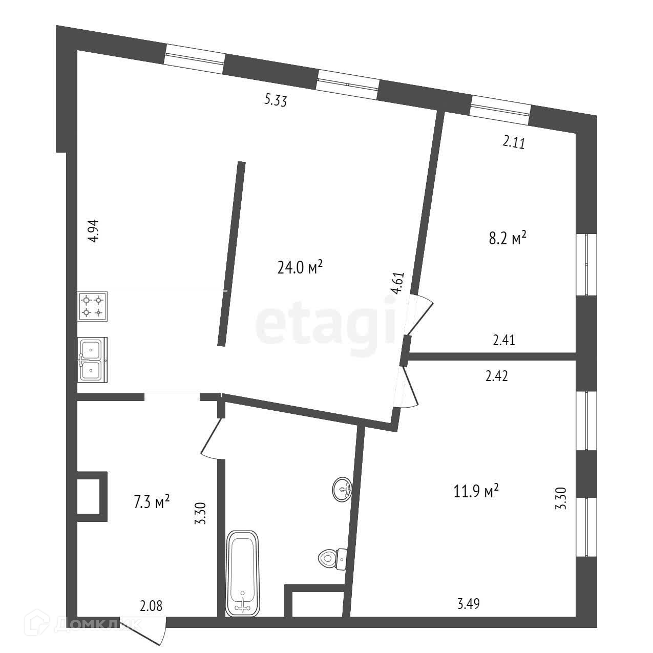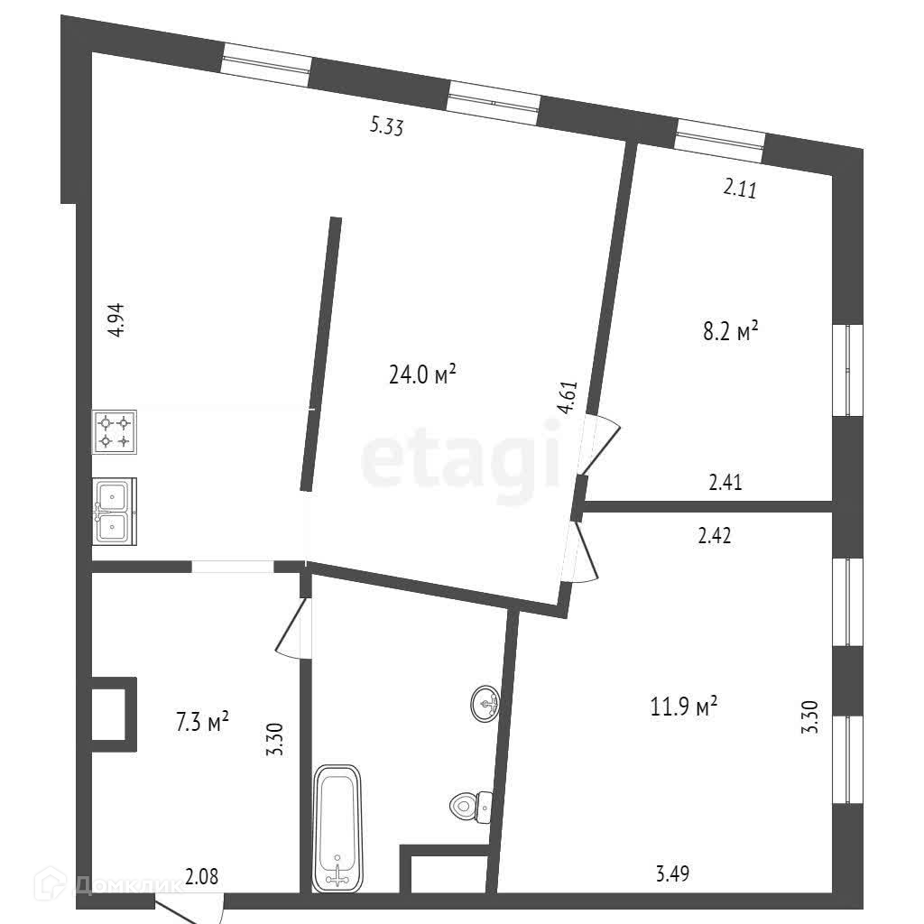 Общая площадь 56 м2