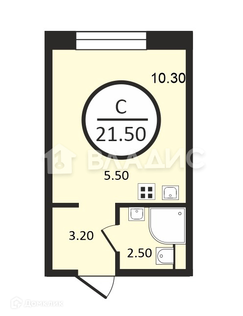 Общая площадь 21.5 м2