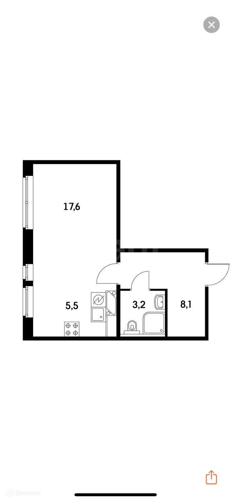 Общая площадь 34.1 м2