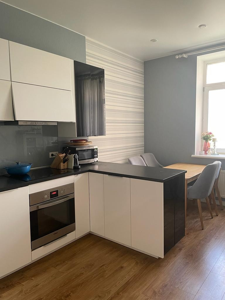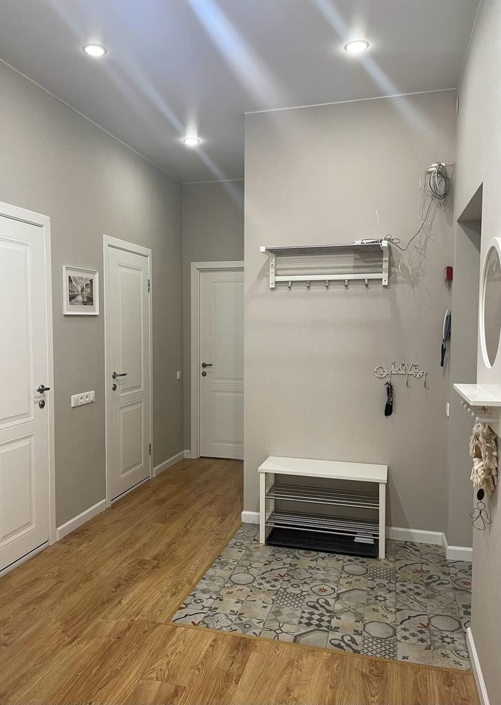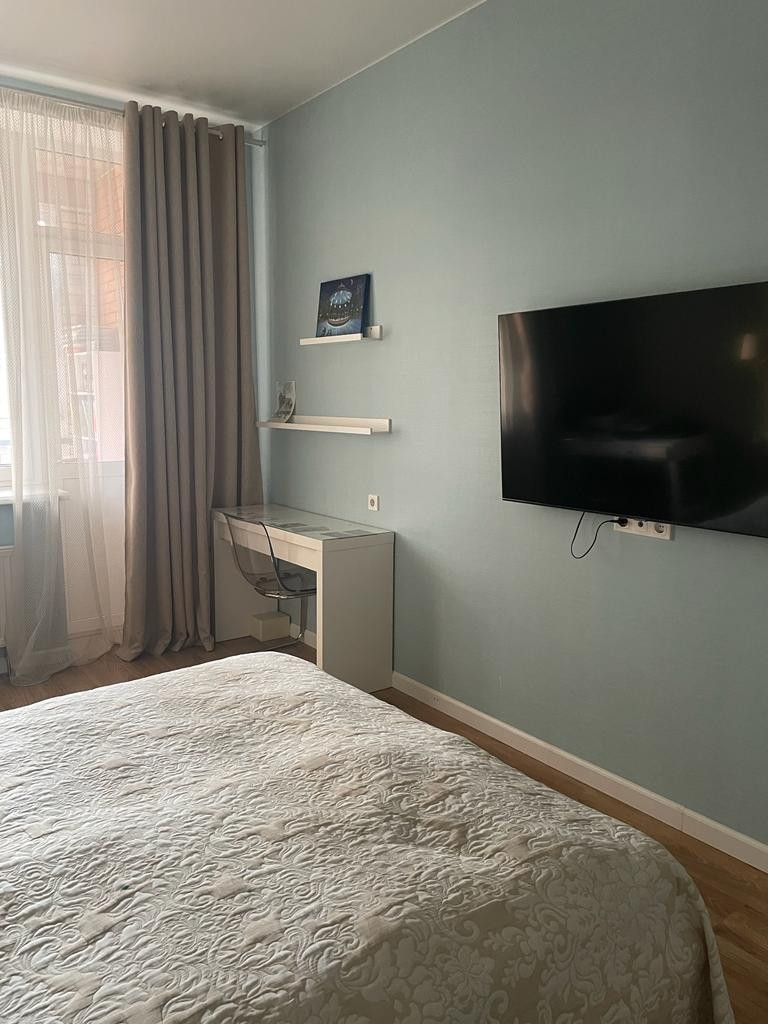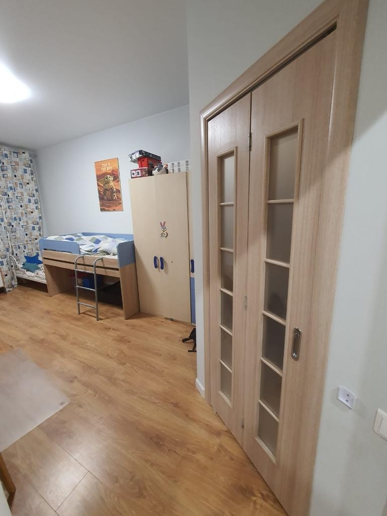 Продаётся просторная светлая двушка-распашонка с хорошим и удобным, продуманным ремонтом. Две большие комнаты, просторная кухня со столовой зоной. Есть кладовая и гардеробная. Два санузла, во втором площадь позволяет при желании установить душевую кабину. Планировка полностью соответствует техническому плану. Спальня оборудована кондиционером. Большой балкон. Все окна выходят во двор, в квартире очень тихо. Дом изначально был "выставочный", строился первым в ЖК, в связи с чем застройщик не экономил на стройке. Развитая инфраструктура, поблизости есть школа, несколько детских садов, поликлиника. Остановка автобуса в 200 метрах, рядом находится многоэтажный паркинг.
