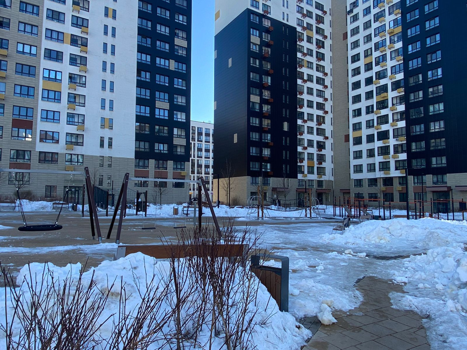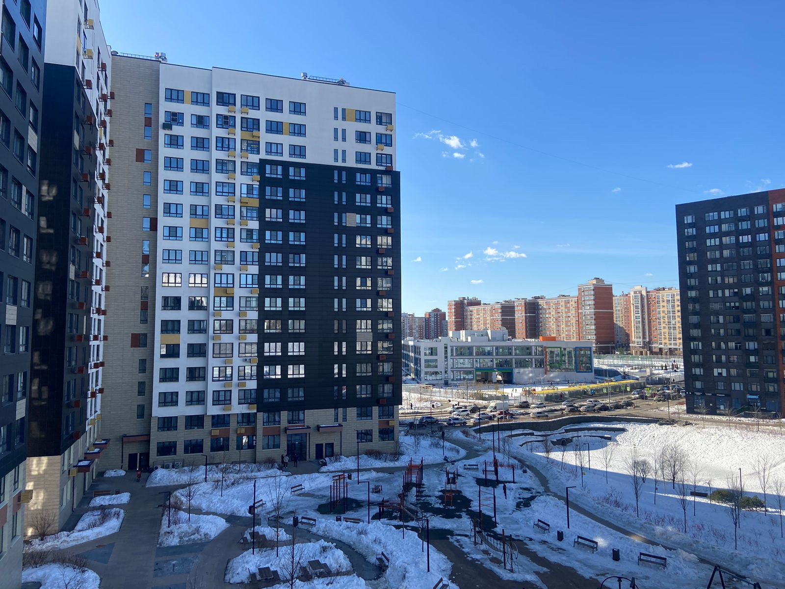 Двор без машин, круглосуточное видеонаблюдение в подъезде и придомовой территории. Комфортная, обустроенная придомовая территория с детской площадкой, прудом, ландшафтным дизайном.