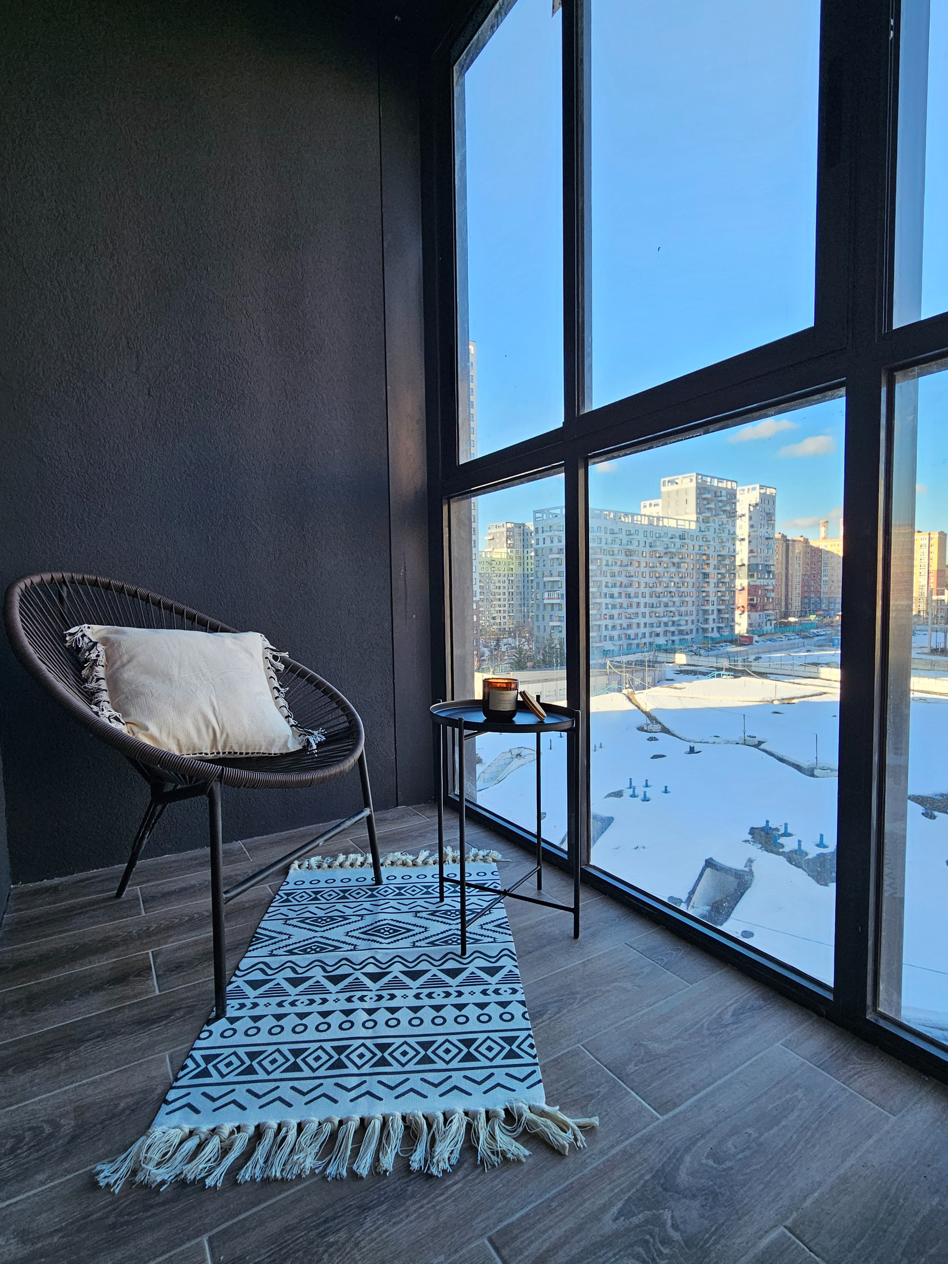 Лоджия с панорамным остеклением. Квартира светлая. Вид НЕ во внутренний двор (нет окон напротив).