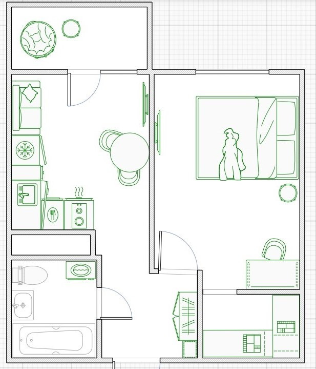 Балкон, лоджия 1 балкон