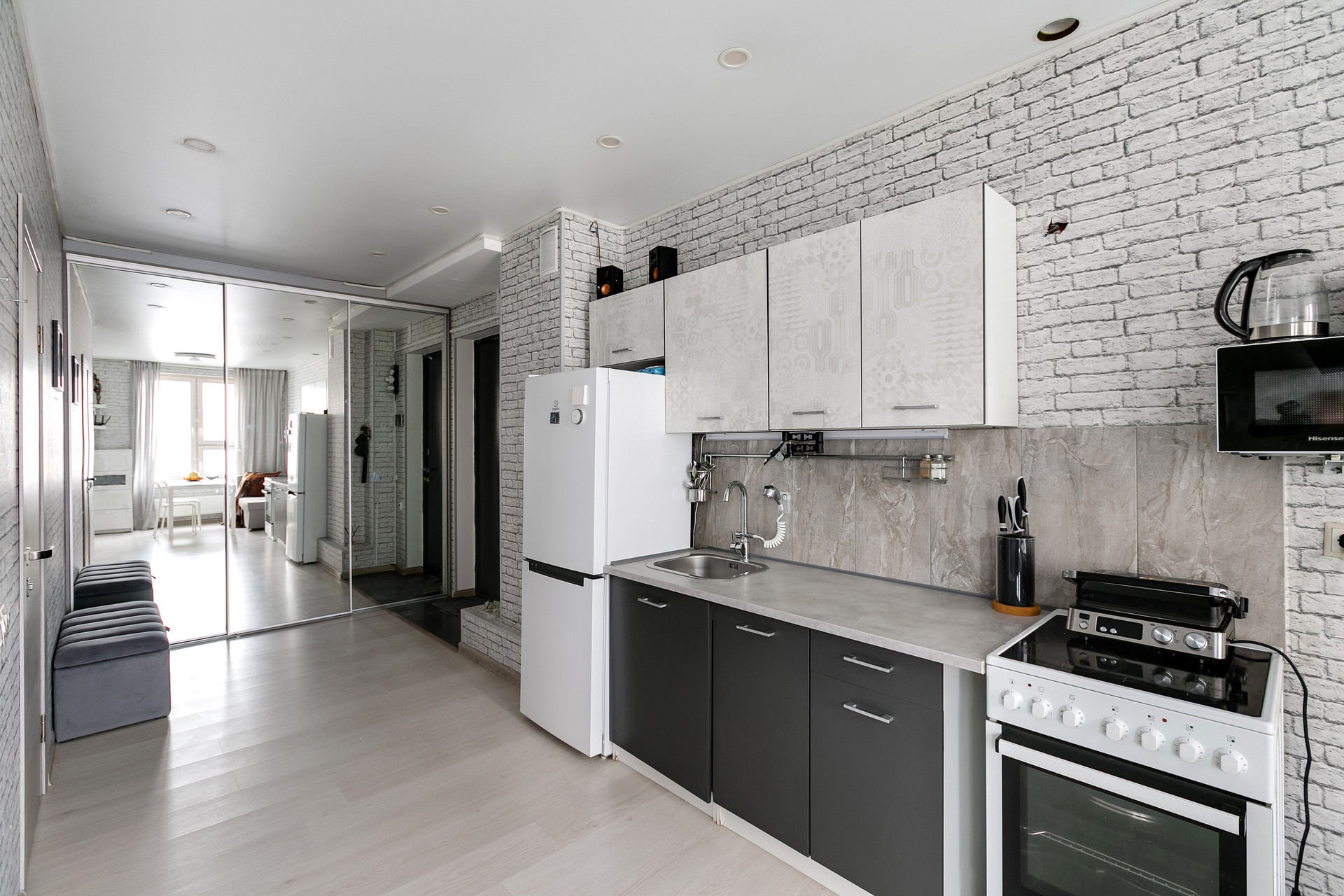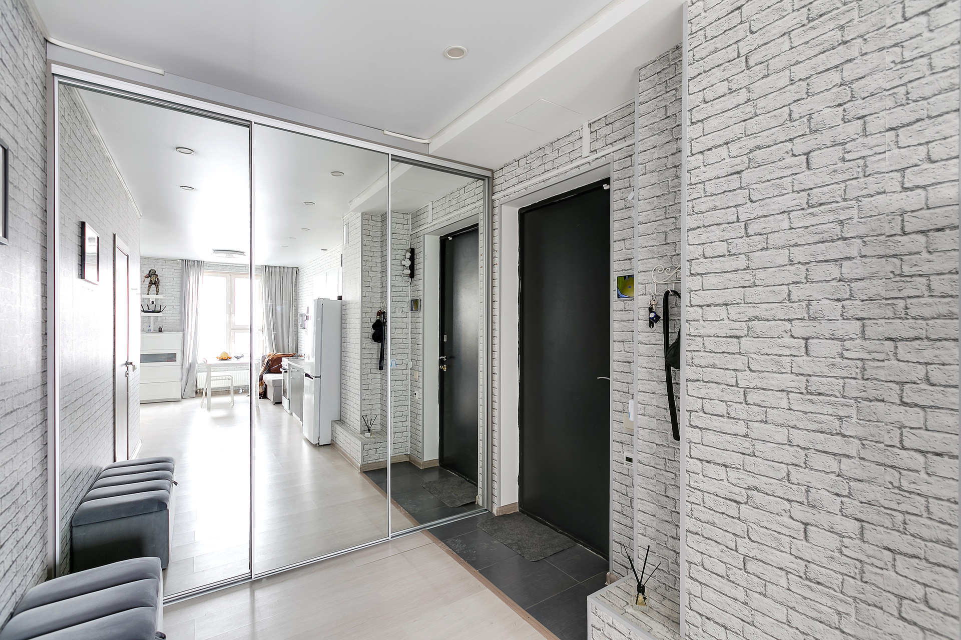 Над входной дверью установлена IP-видеокамера с возможностью улавливания движений и последующей отправки оповещений на смарт-фон, таким образом ваша квартира находиться под Вашим круглосуточным наблюдением и контролем.