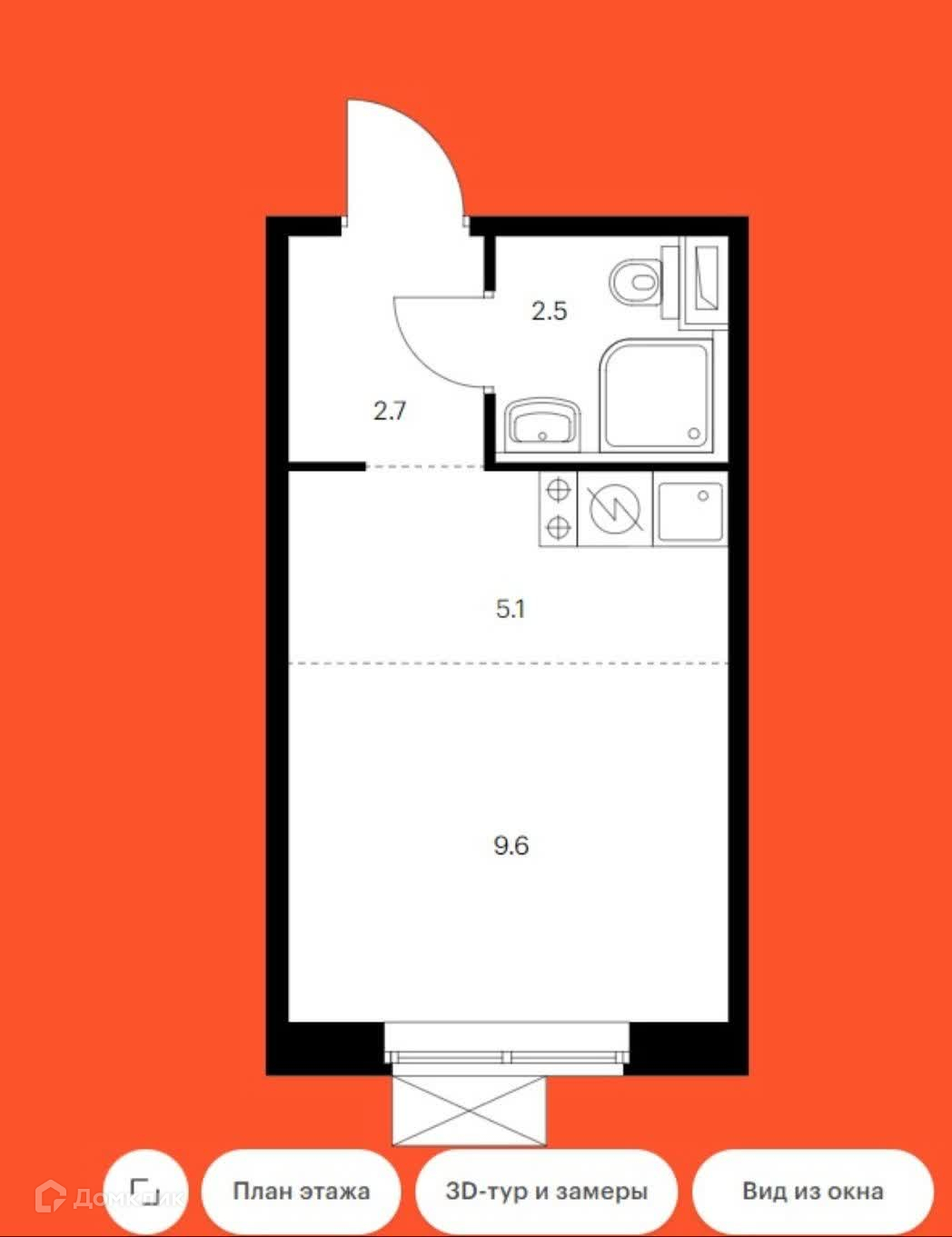Жилая площадь 9.6 м2