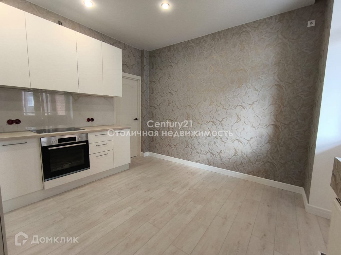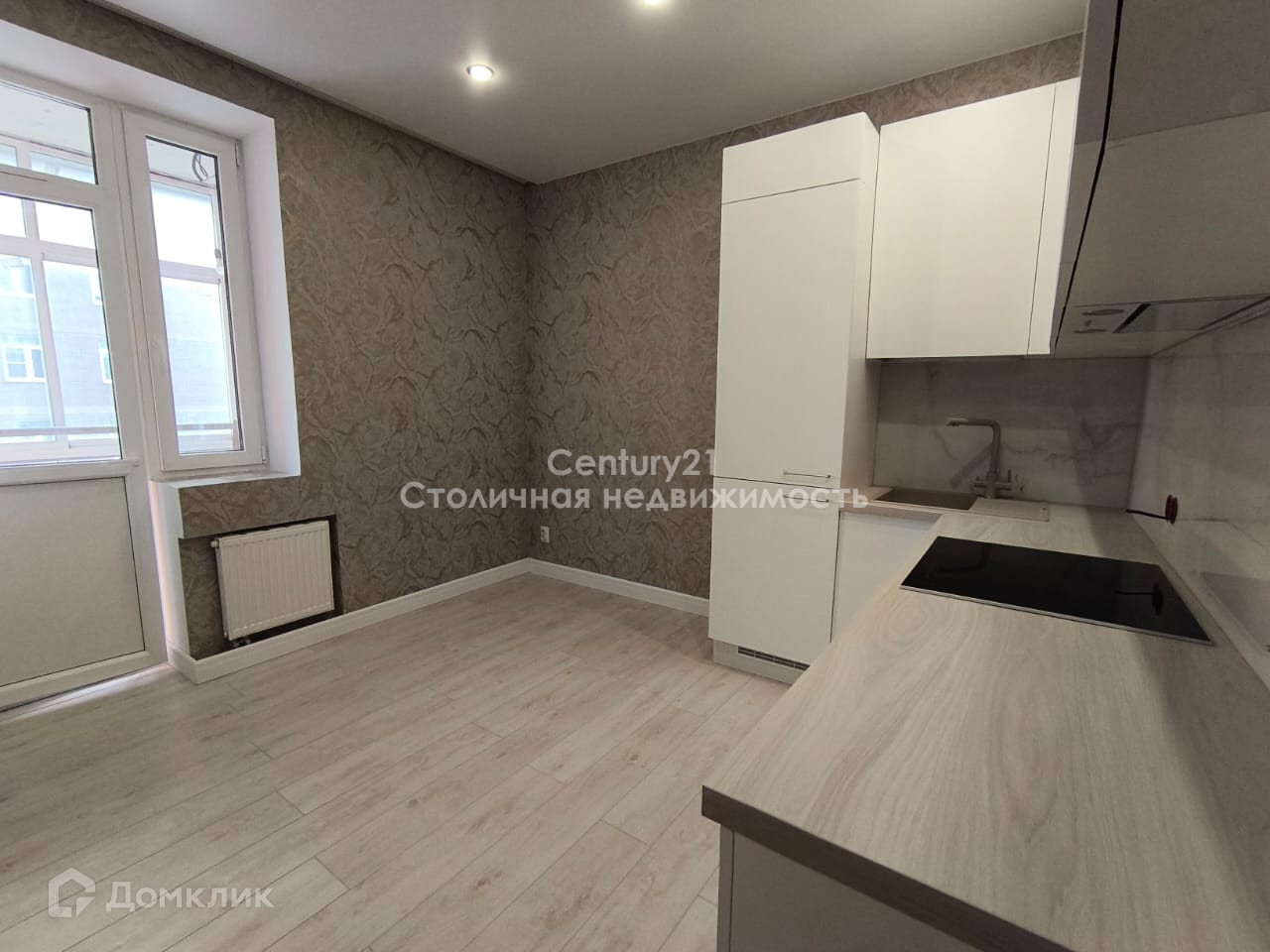 Встроенный кухонный гарнитур со всей техникой, а именно - холодильник, варочная панель, духовой шкаф, вытяжка - остается новым владельцам.