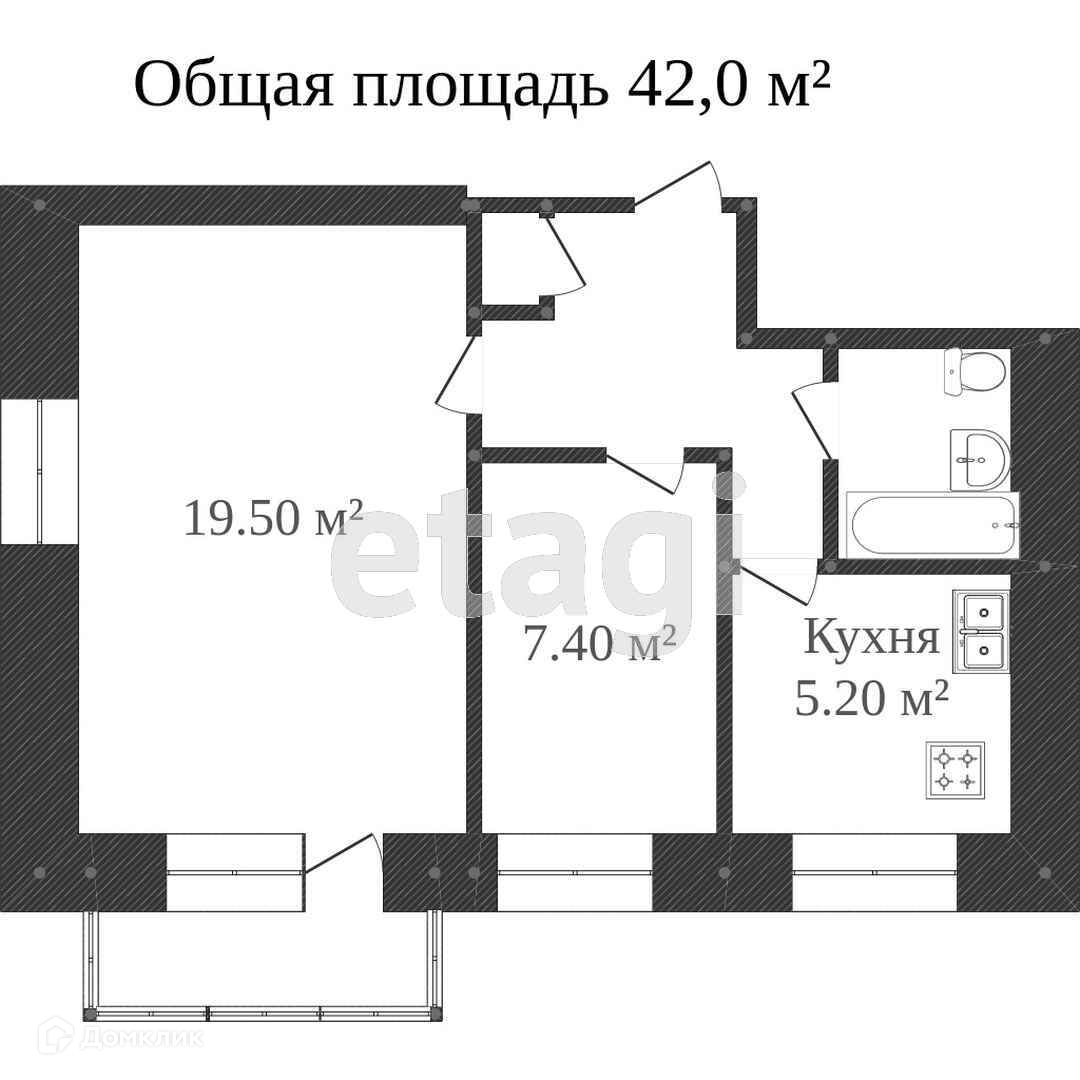 Общая площадь 40.7 м2