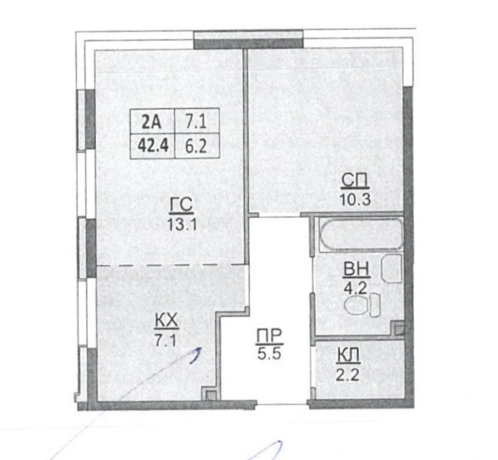 Общая площадь 42 кв.м.