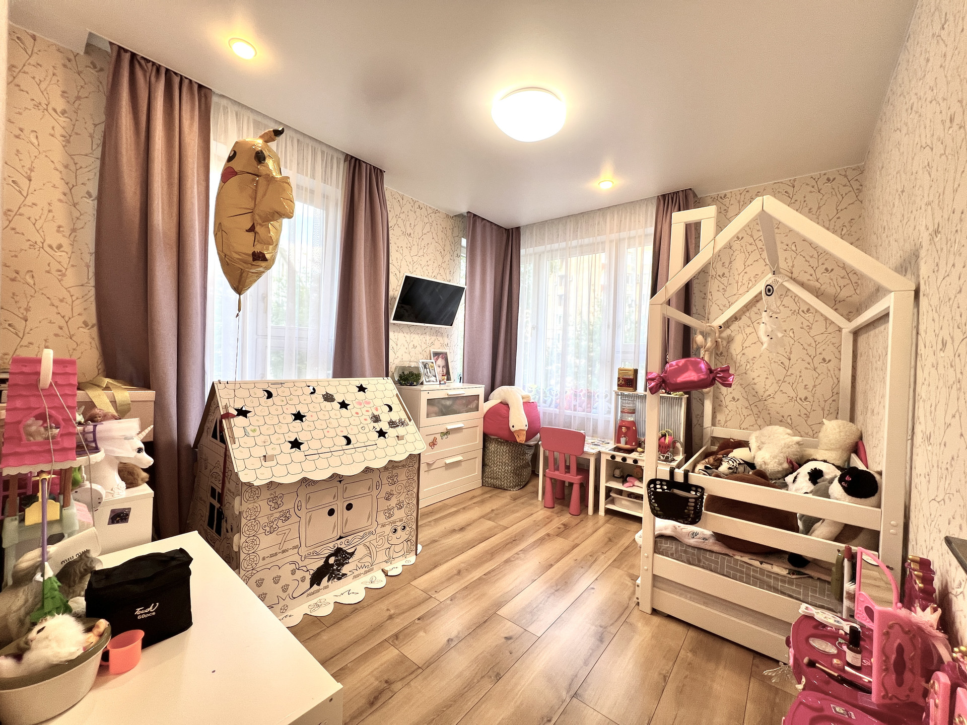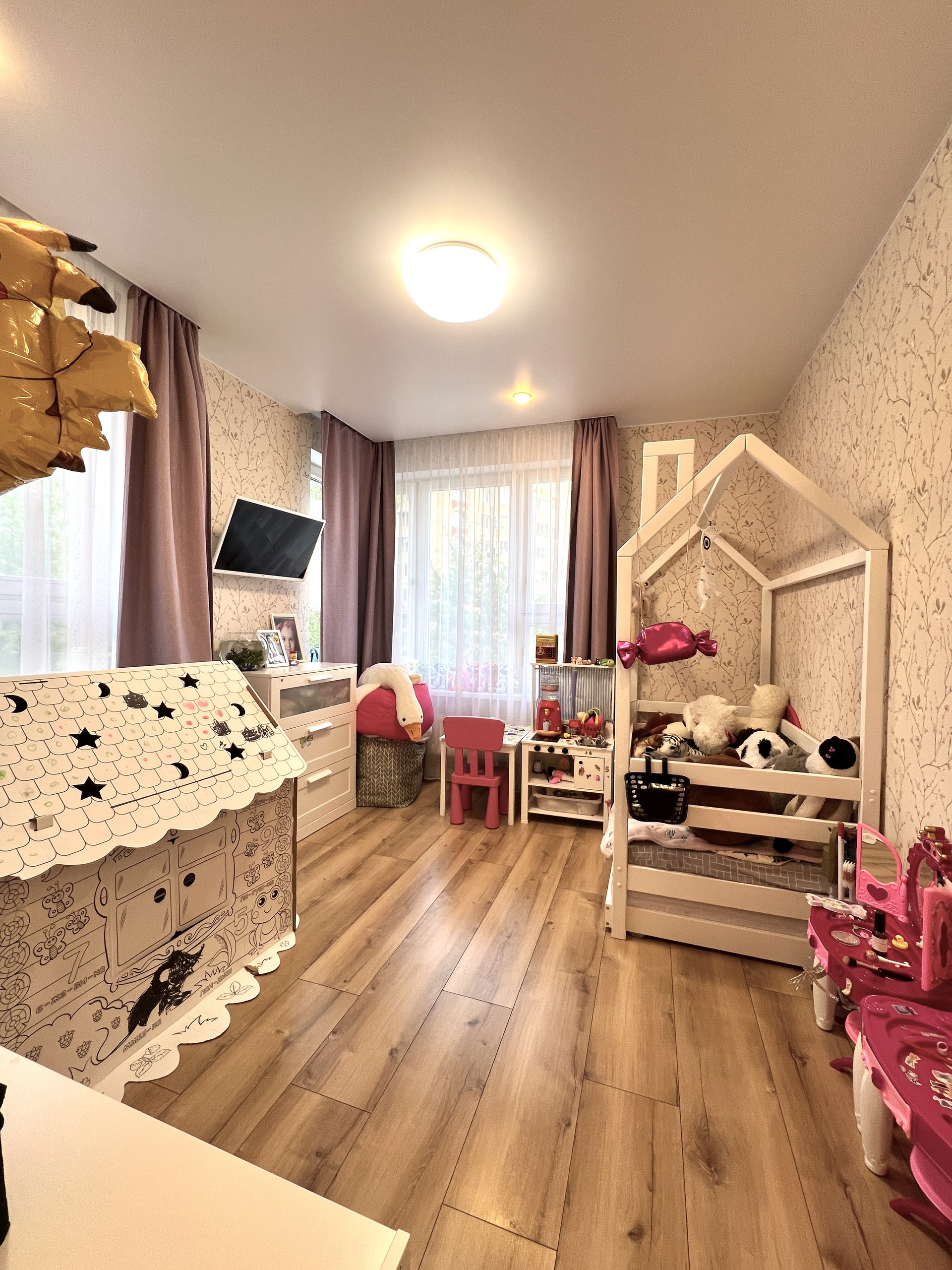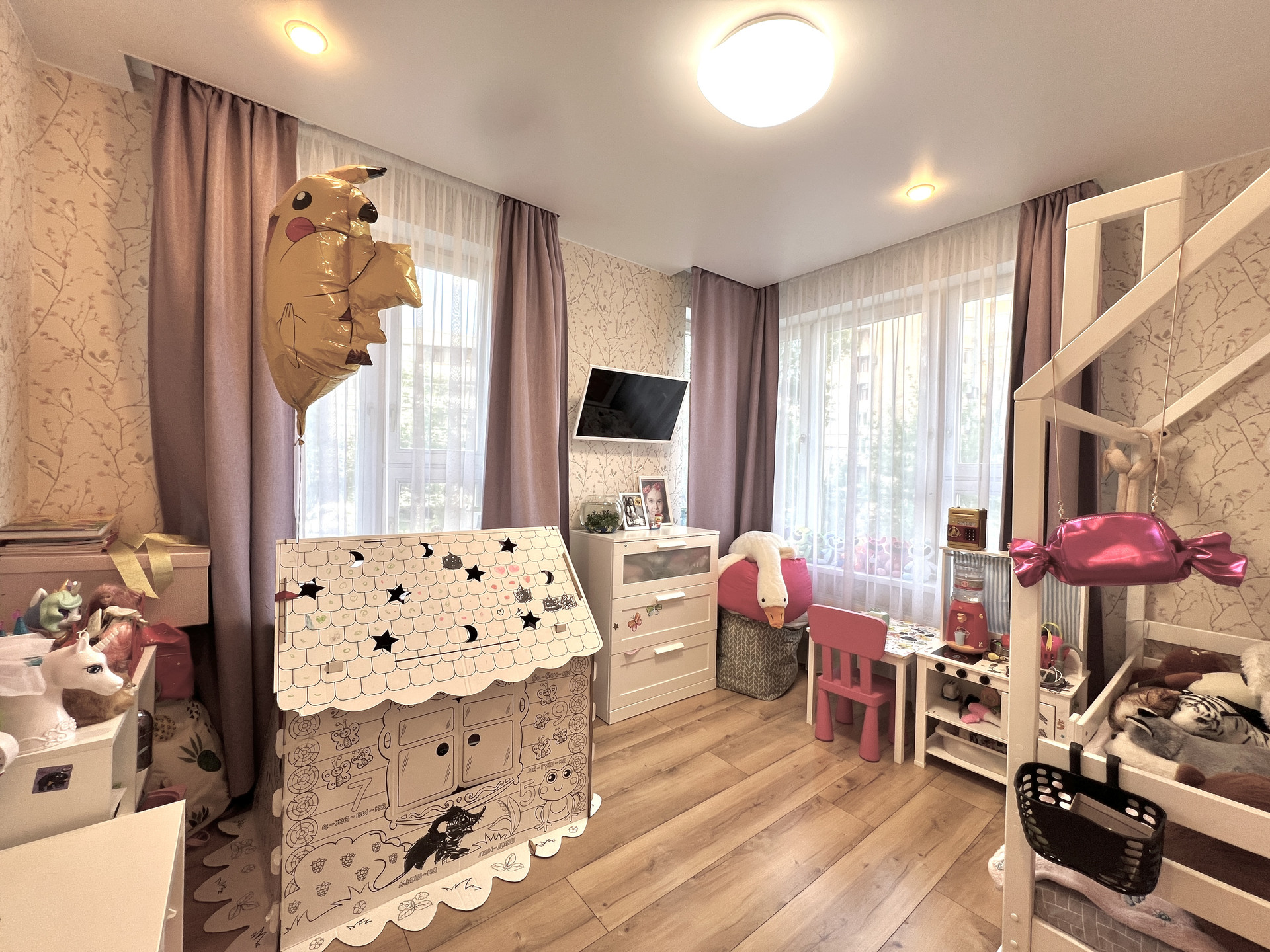 Удобная планировка. Отдельная спальня (11 кв.м), детская (13 кв.м), в комнатах много света.