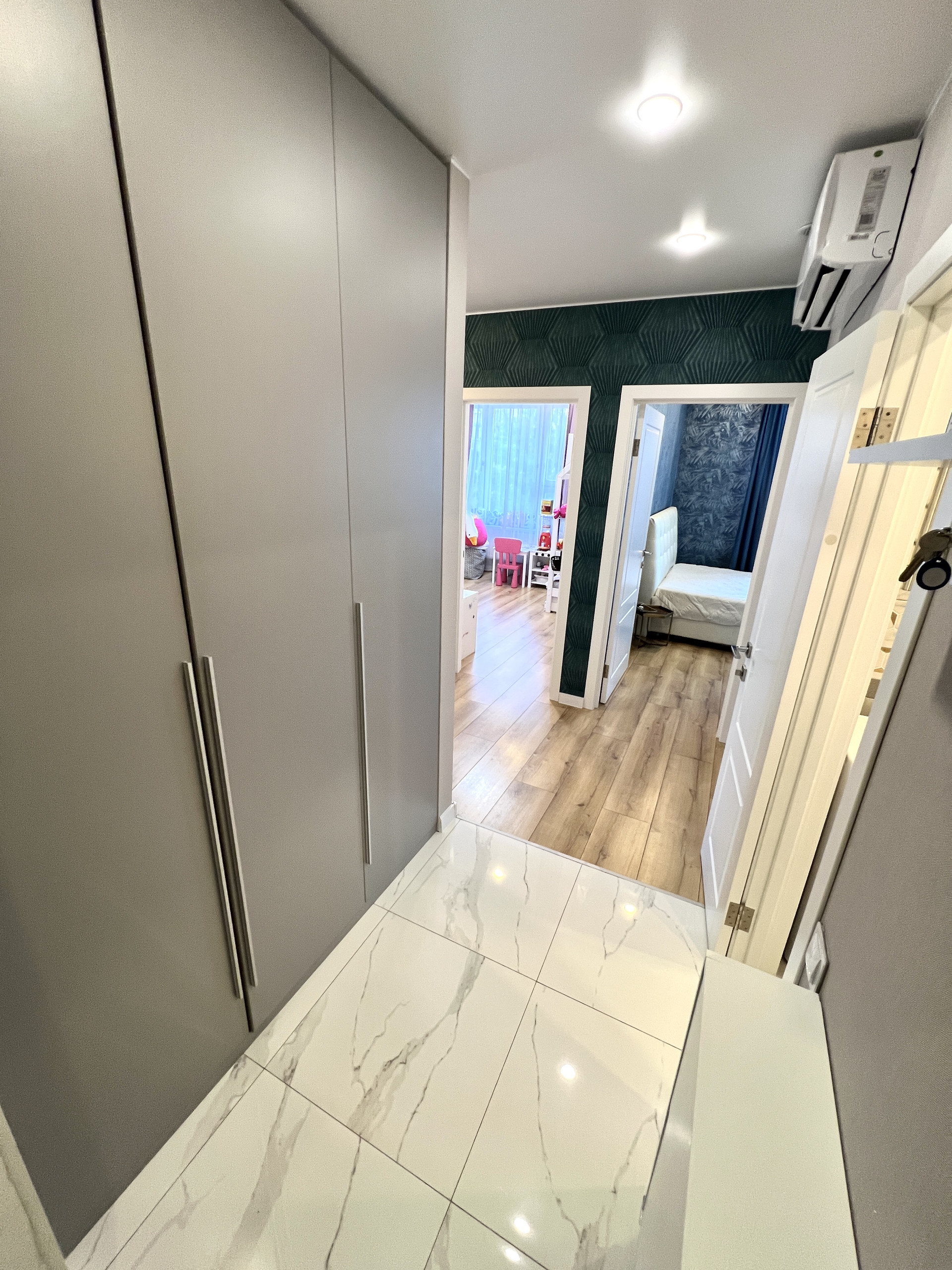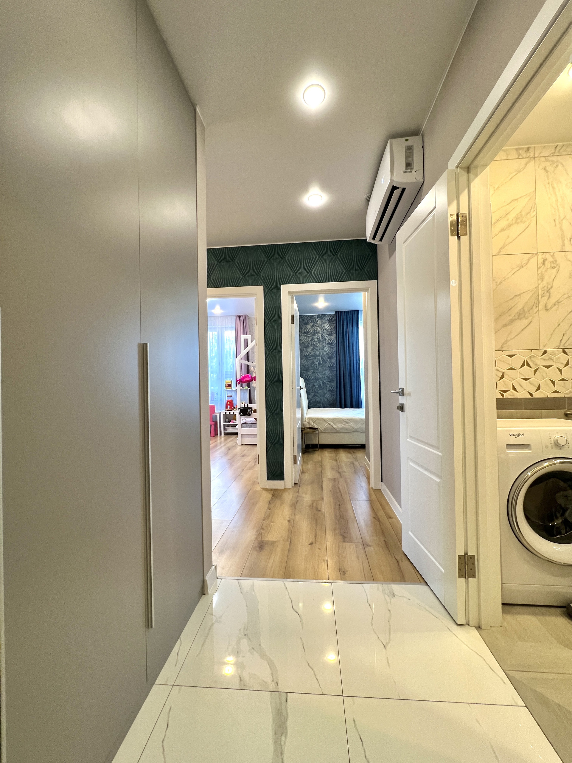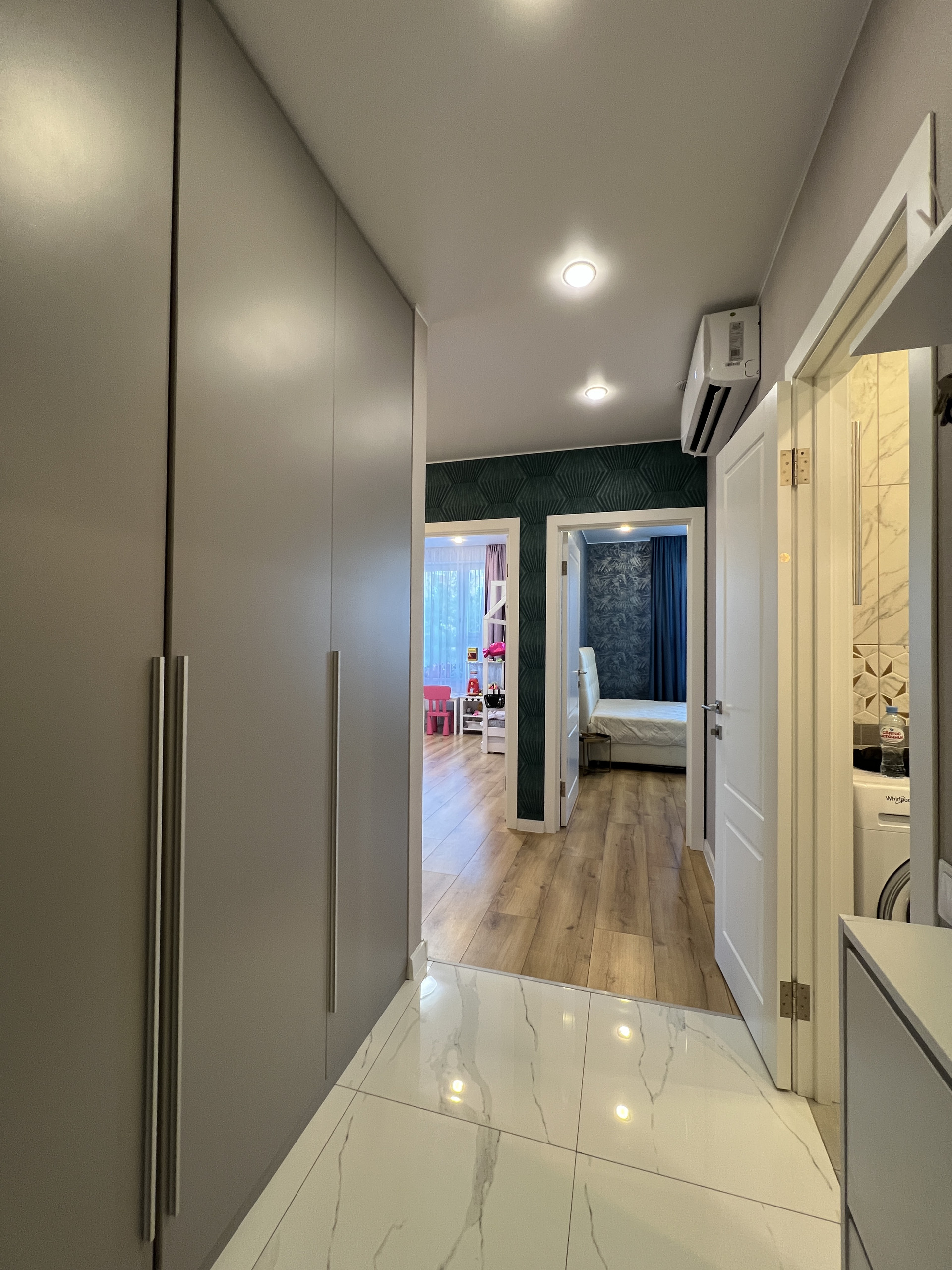 В квартире выполнен современный ремонт, с использованием современных материалов, делали для себя. Встроенная мебель и электроника, посудомоечная машина. Кондиционер (холод-тепло). Просторный коридор, совмещенная ванная комната, большой шкаф в прихожей и спальне (скрытого монтажа). Окна выходят во двор.