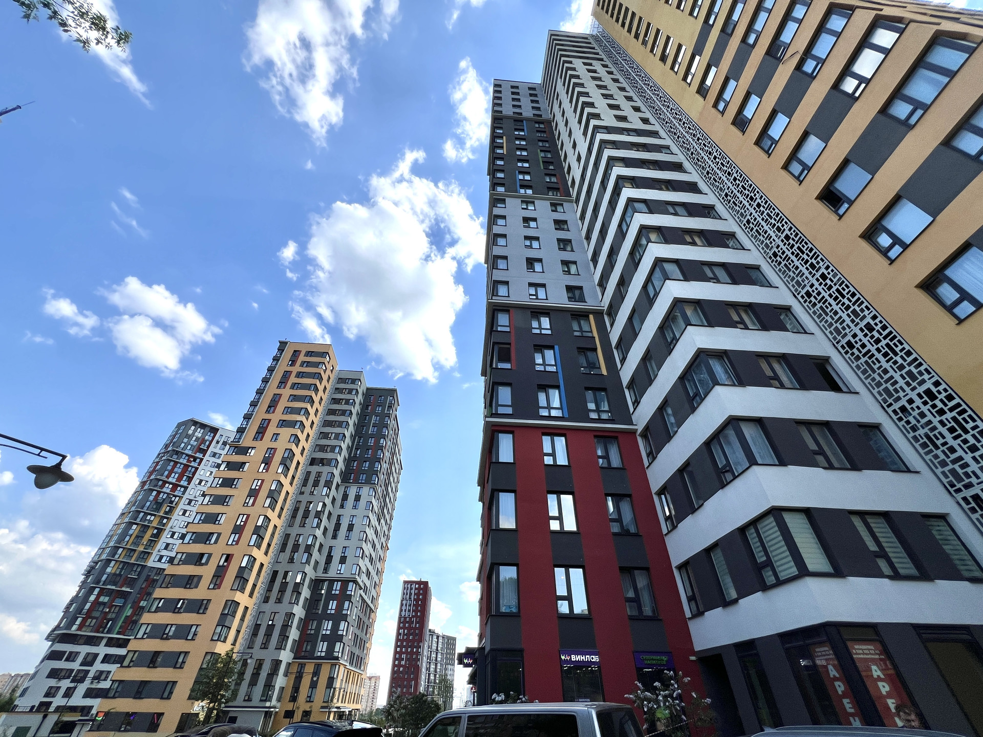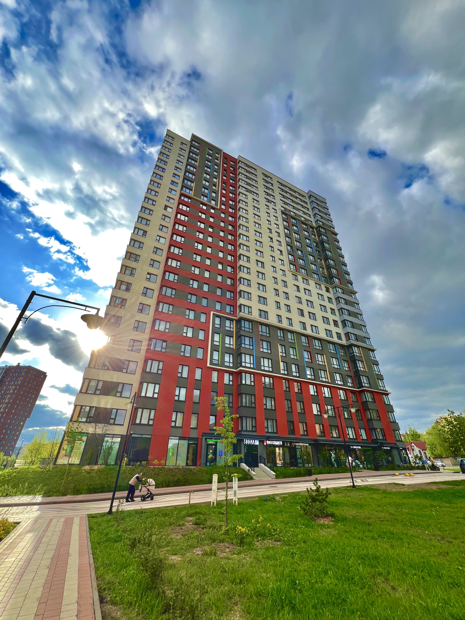 На первых этажах пекарни, супермаркеты, пункты выдачи и др. объекты инфраструктуры.