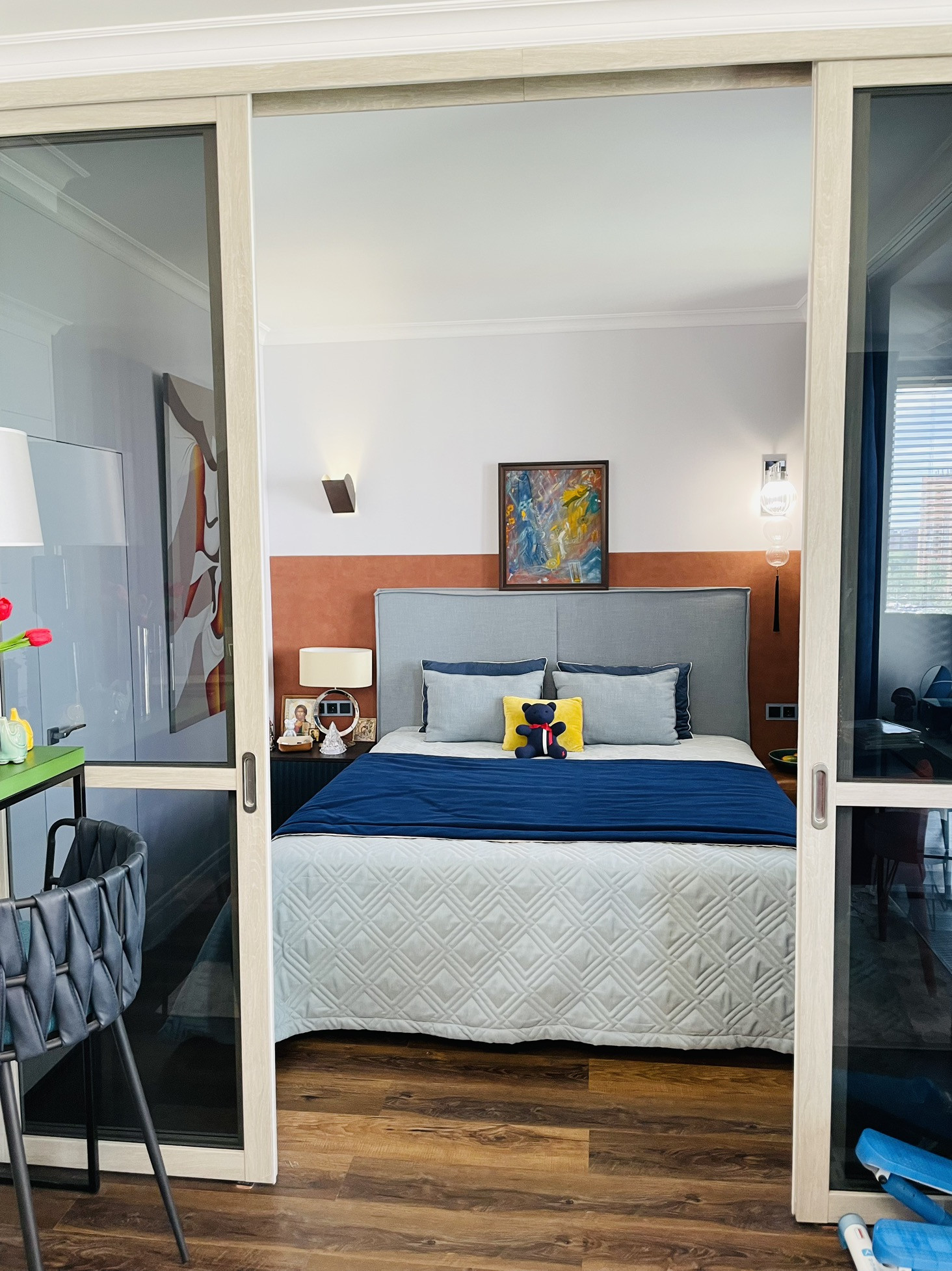 Продается стильная евродвушка с современным дизайнерским ремонтом, делали для себя из качественных и дорогих дизайнерских материалов в жилом комплексе бизнес-класса "Новая Звезда" в 10 минутах ходьбы от станции метро "Бачуринская" (открытие 1 квартал 2024 г.) и 20 минутах от станции Ольховая (открыта).