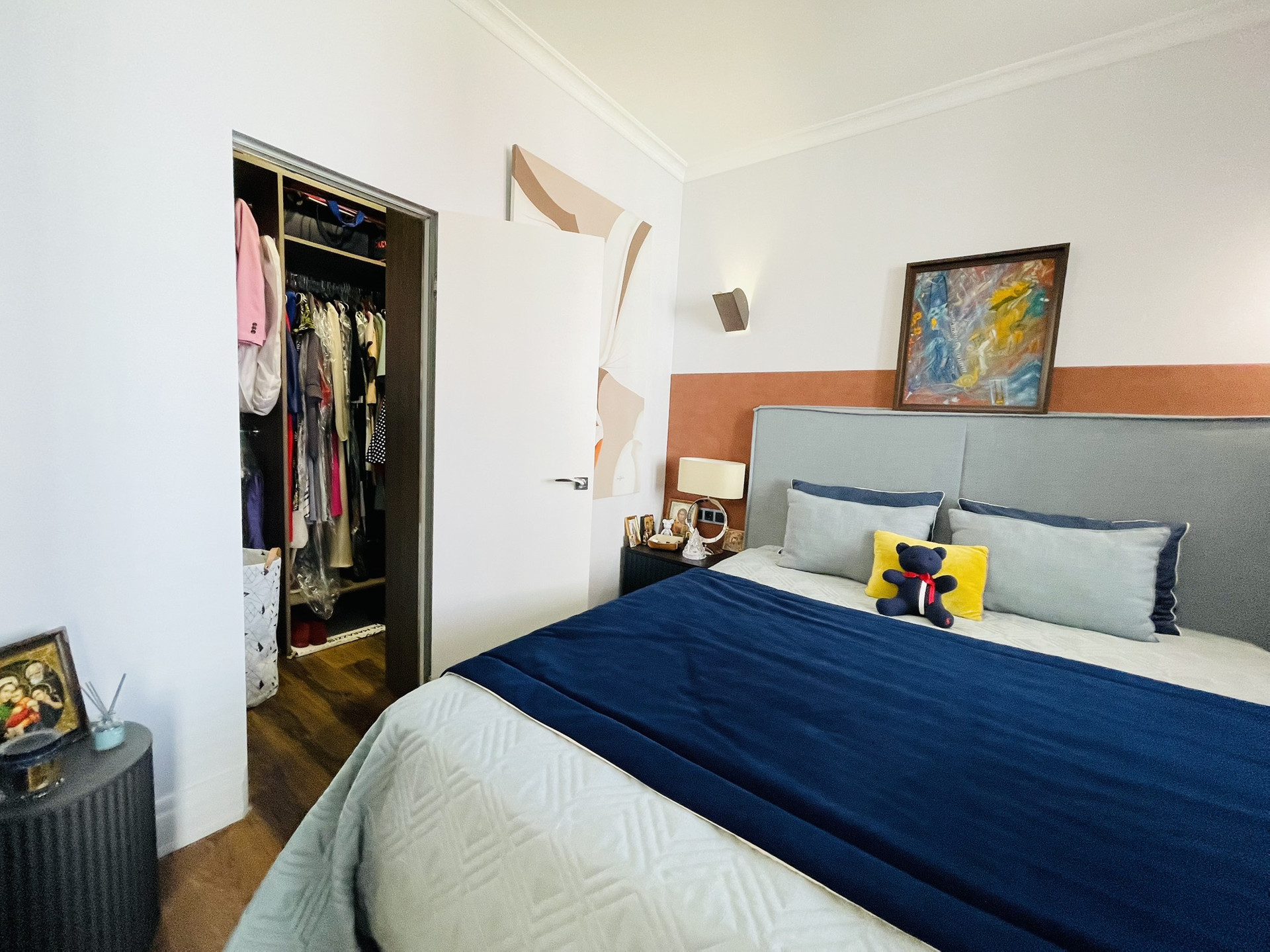 Просторная гардеробная с выходом из спальни.
