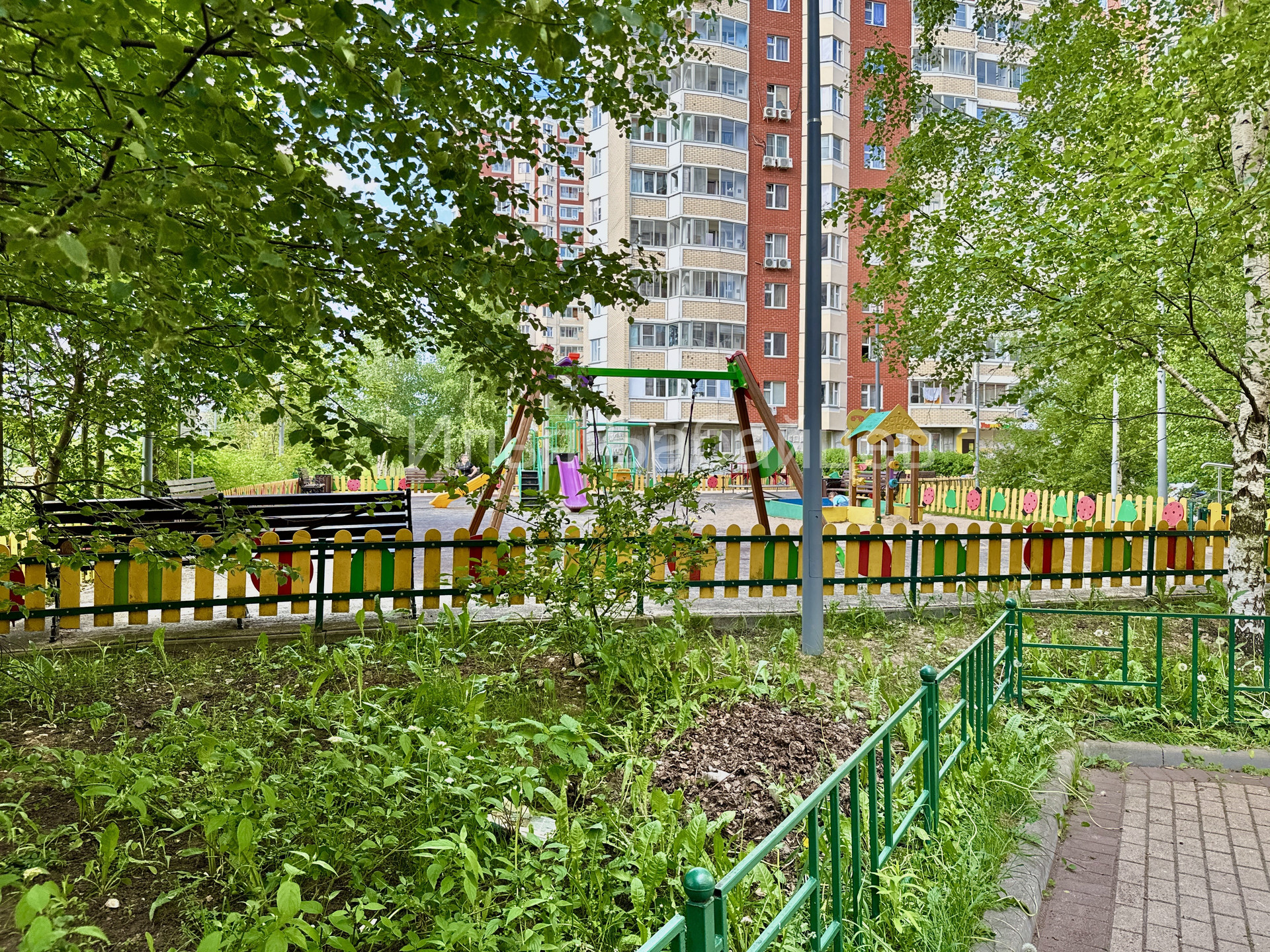 Подъезд оснащен пандусом, из него жители попадают в благоустроенный двор-парк, полностью закрытый от посторонних. Внутри двора-парка расположены детские площадки, изготовленные из природных материалов, предоставляя безопасное пространство для игр малышей всех возрастов.