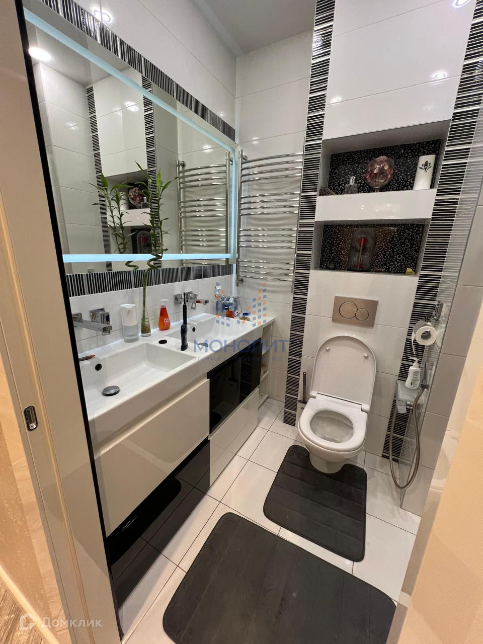 2 санузла, в одной их которых установлена гидромассажная ванна; 1 гардеробная комната. Квартира полностью готова к заселению и проживанию.
