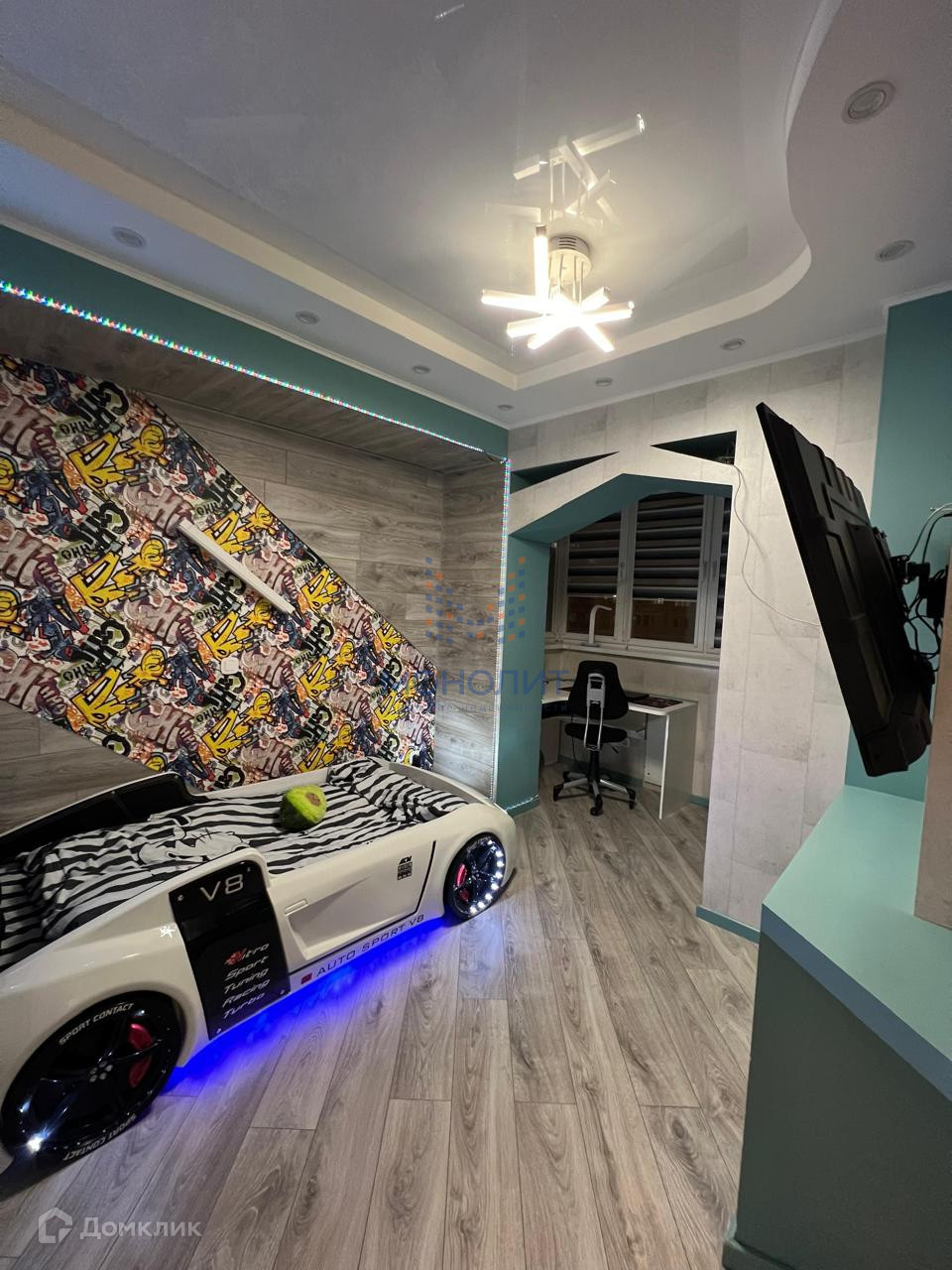 Комнаты изолированные: спальня, 2 детские комнаты и гостиная совмещенная с кухней.