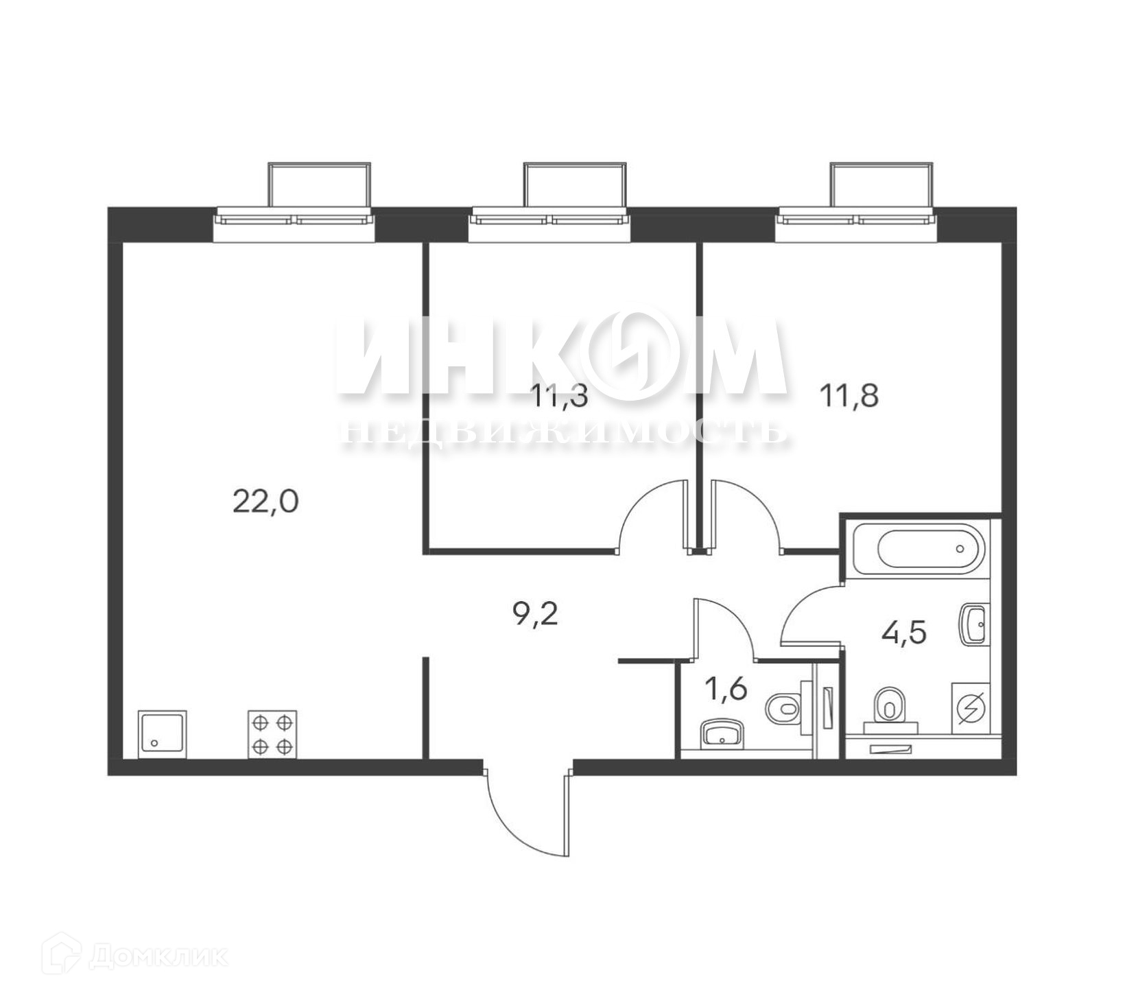 Общая площадь 59.4 м2