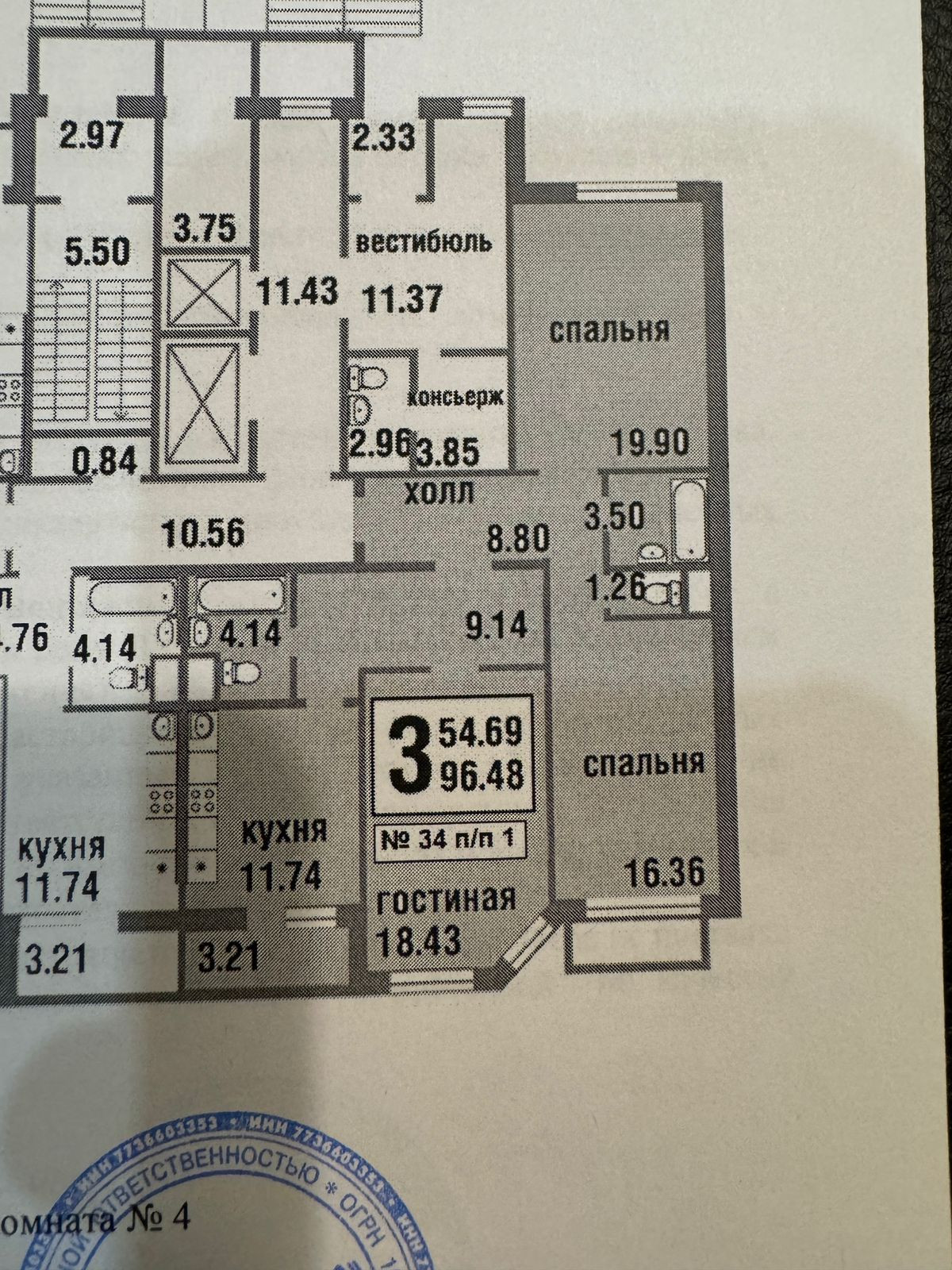 Жилая площадь 54 м2