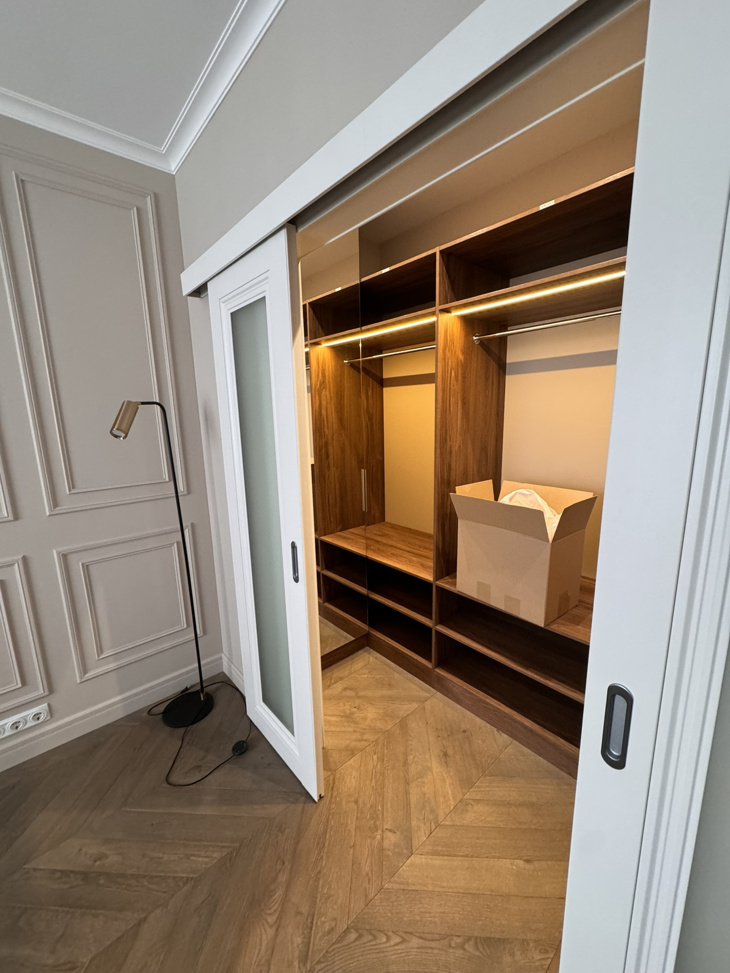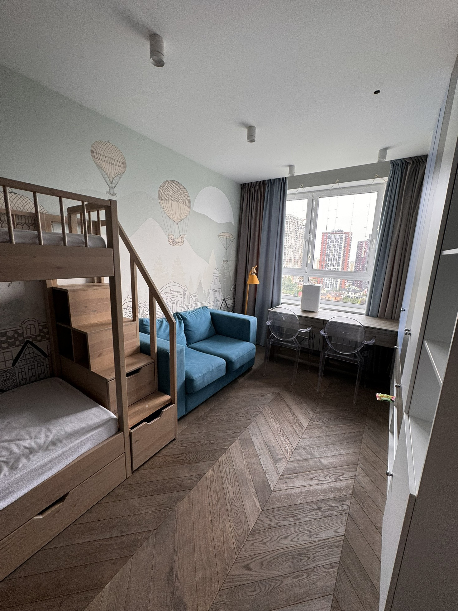 2 санузла, 2 гардеробные, детская и спальня, распашная планировка, а также просторная кухня-гостиная с утепленной лоджией