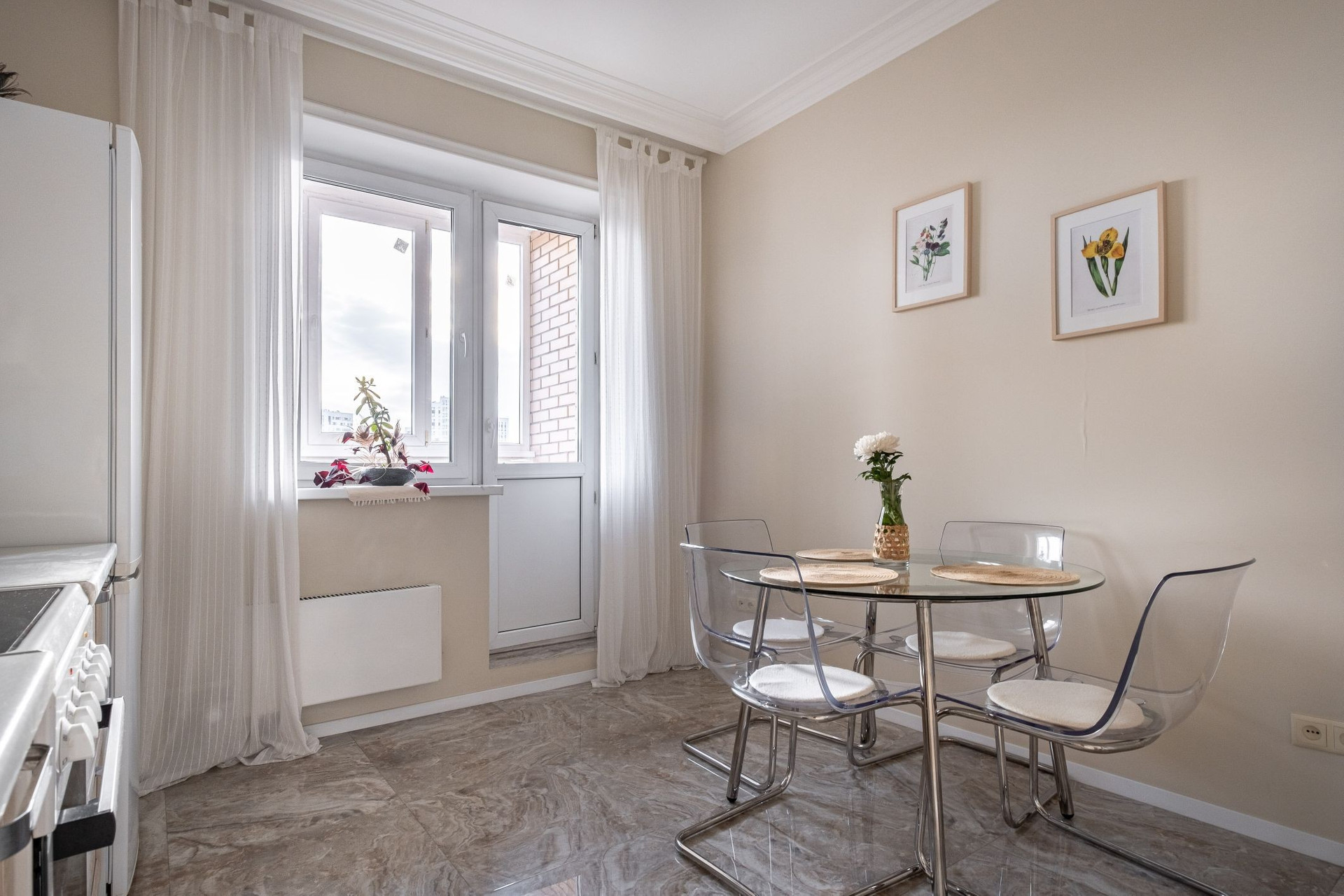 Из окон открывается прекрасный вид на двор и парк, где можно наслаждаться свежим воздухом и зелёными пейзажами. Наличие балкона добавляет дополнительное пространство для отдыха и возможность насладиться чашкой кофе на свежем воздухе.