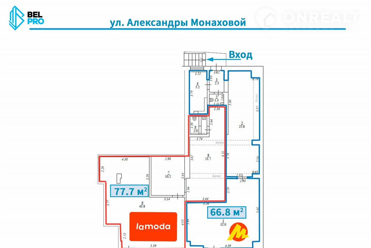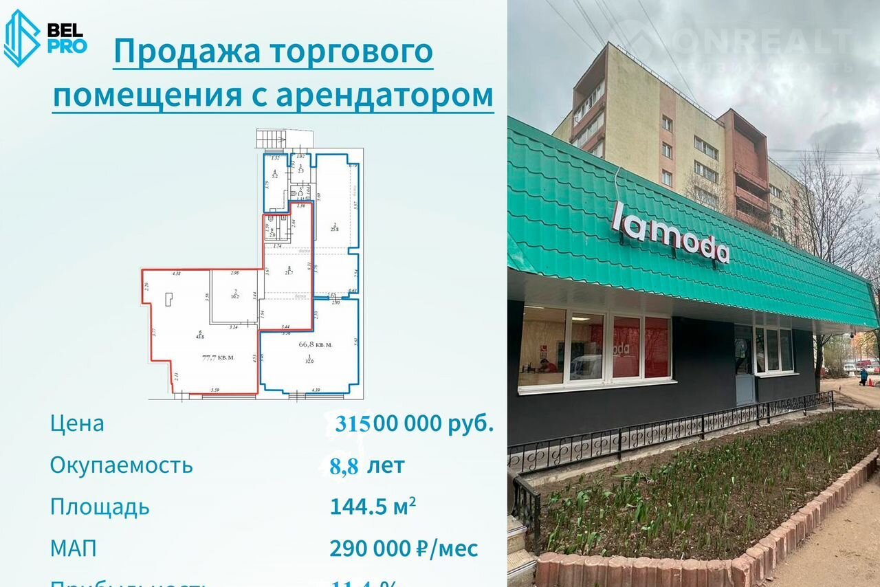 Текущий арендатор - ПВЗ Lаmоdа (77,7 кв.м.) и ПВЗ Яндекс маркет (66,8 кв.м.)
