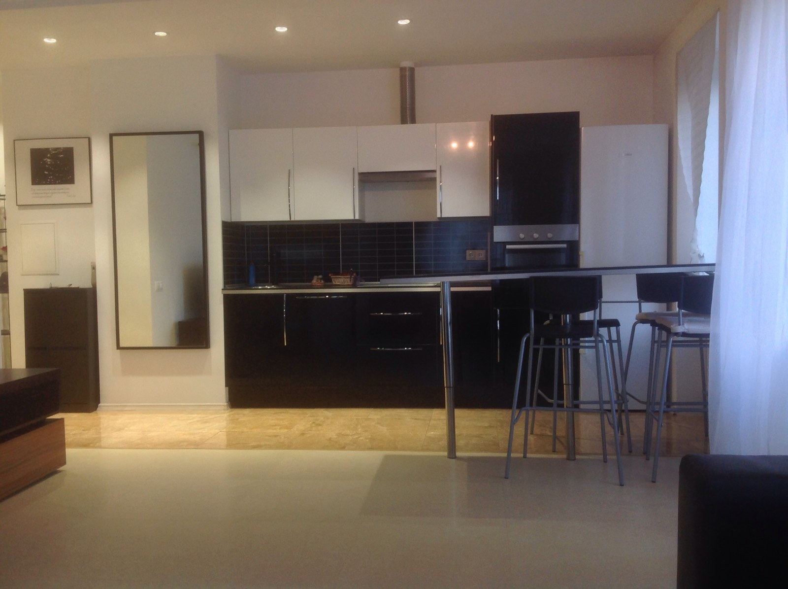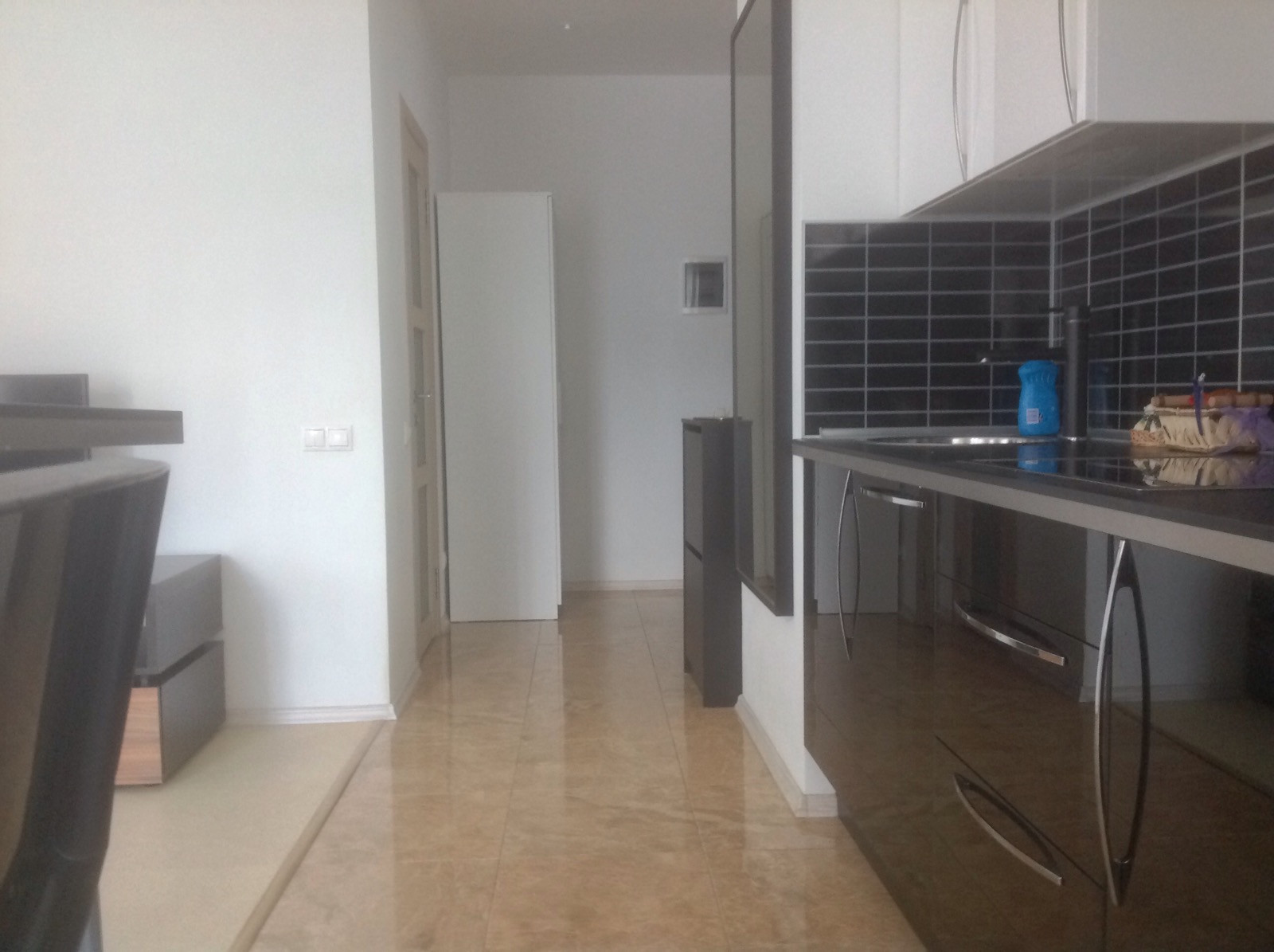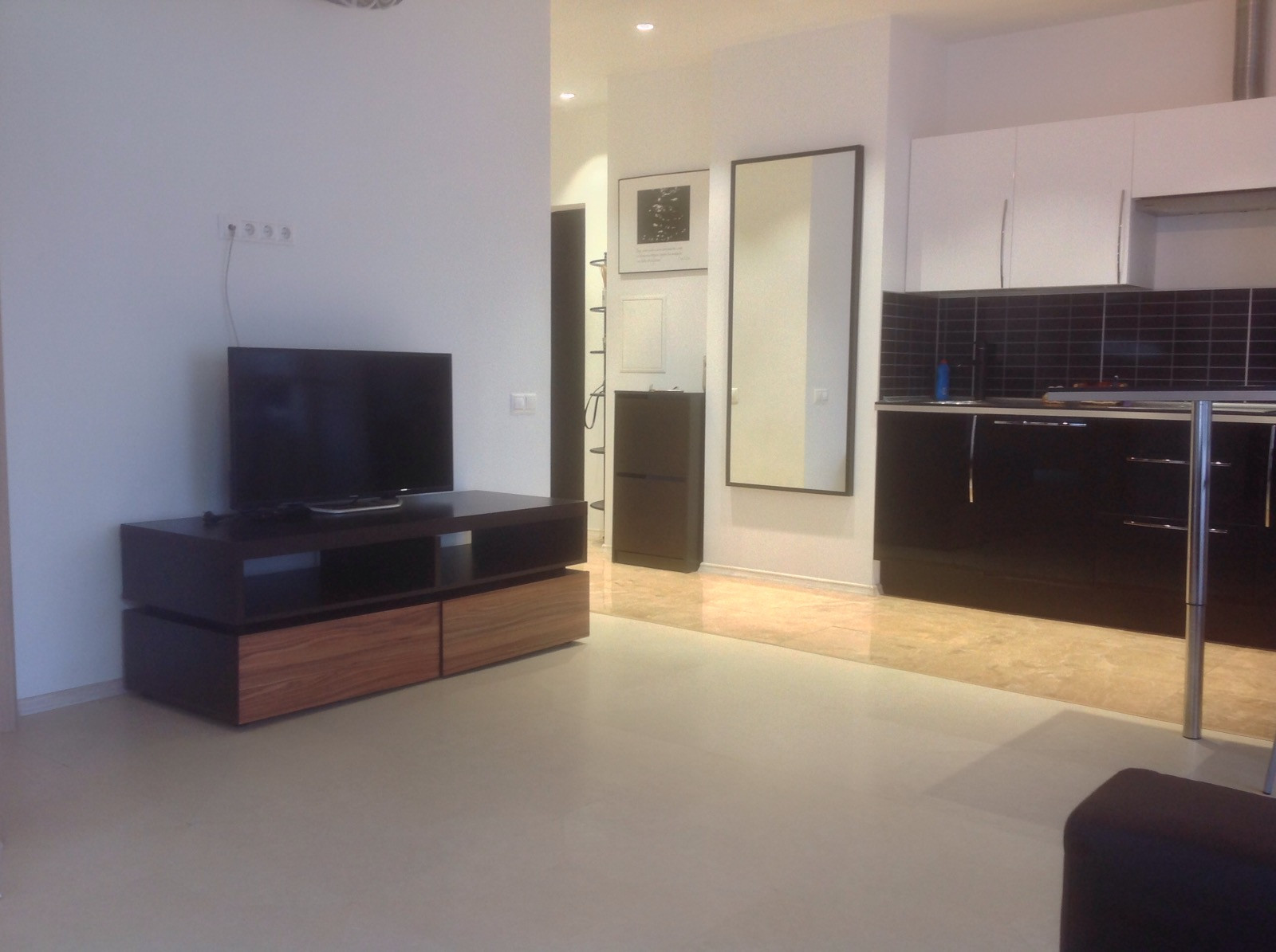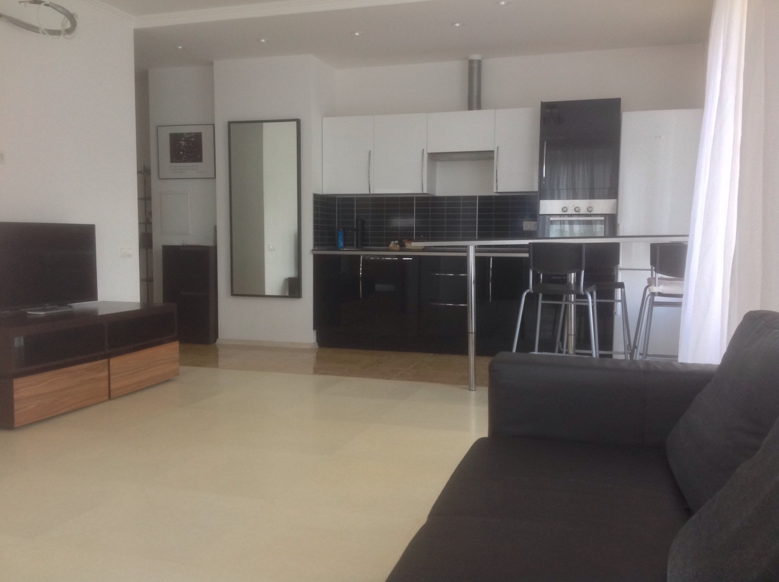 Общая площадь 48м2, кухня объединена с гостиной + изолированная спальня. Большой современный санузел. Есть вся необходимая мебель и бытовая техника кроме кондиционера. Из техники: стиральная машина, посудомойка, плита, духовка, телевизор.