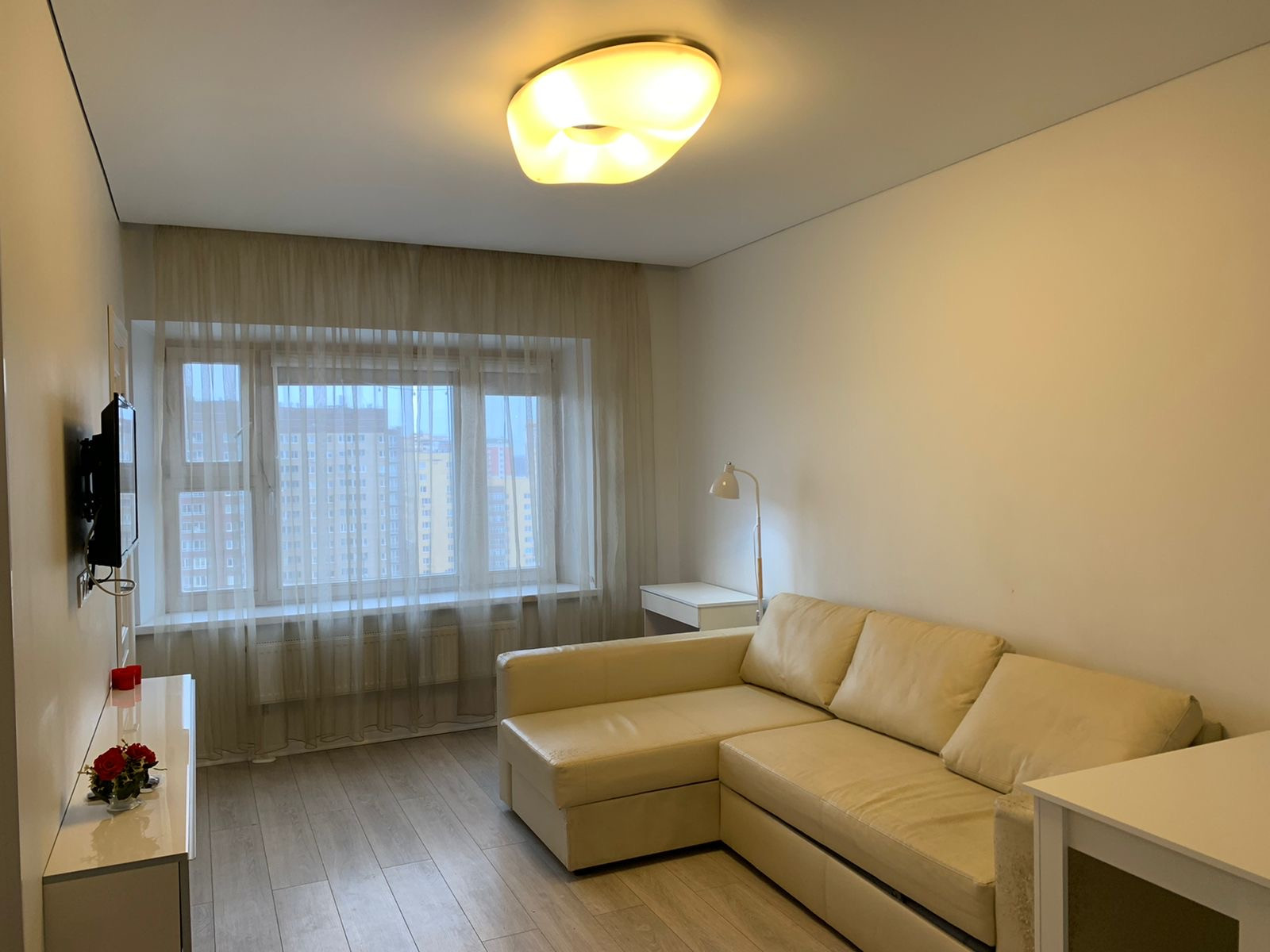 Уютную светлую Однокомнатную квартиру Общ.пл. 36 кв.м / Студия- Гостиная с Кух-ней 19 кв.м, Спальня 6 кв.м ( фактически ЕвроДвушка) в ЖК " Garden Park Эдальго" ( Гарден Парк Эдальго), в современном монолитно-кирпичном доме бизнес-класса, эксклюзивный дизайн входной группы, круглосуточная охрана, видеонаблюдение, бесшумные лифты, красивый огороженный двор. В квартире сделан дизайнерский ремонт в светлых тонах. в Студии- Гостиной, совмещенной с Кухней - Диван мягкий угловой раскладной, ТВ ЖК на стене, Шкаф-Купэ для одежды и вещей, стол компьютерный с пуфиком, обеденный стол, 2 стула, Кухонный встроенный Гарнитур, варочная электропанель, духовой шкаф, печь СВЧ, Холодильник 2-х камерный, электрочайник, большая Гардеробная при входе, в Спальне 6 кв.м - Диван раскладной, комод и пуфик, в санузле - большая ванна, мойдодыр с зеркалом и стиральная машина, метро Коммунарка 10 мин.пешком, рядом красивый пруд, прогулочная зона, Фитнес-Центр, Бассейн, много магазинов - Глобус, Перекресток, кафе, пекарни, аптеки. Сдаю на длительный срок, отличная хозяйка. Показ и заселение 28 января.