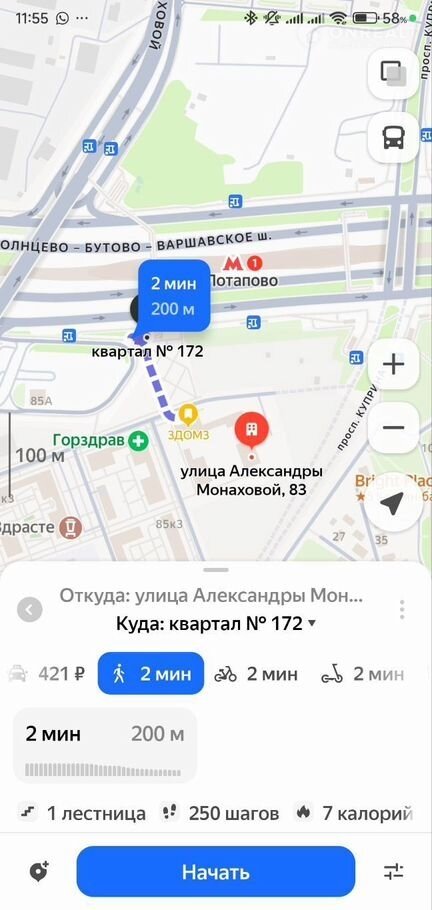 Сдаётся квартира евро- 2 шка.                1 спальня и кухня - гостиная.                  В квартире есть всё для комфортного проживания.                          Холодильник, телевизор, кондиционер,посудомоечная машина, фильтр для воды                               Развитая инфраструктура , хорошие спокойные соседи                                                В двух шагах метро Потапова                                          Оперативный показ