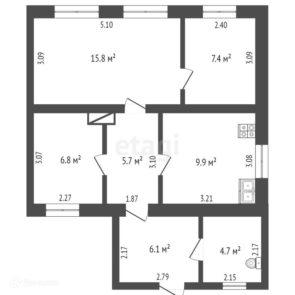 Общая площадь 56 м2
