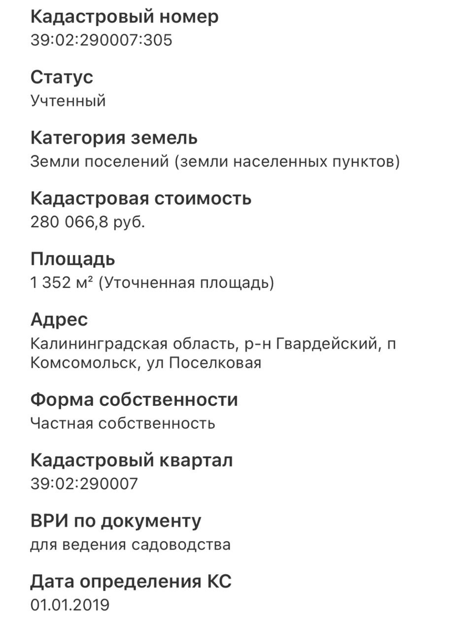 Участок 13,5  сот. расположен в Поселке Комсомольск , Гвардейского р-на. в конце ул Поселковая крайний участок в линии.