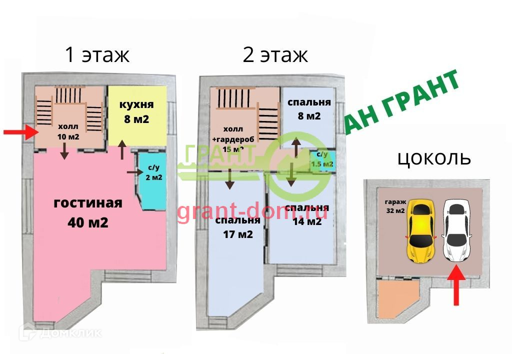 2 этаж-3 спальни, холл, гардероб и санузел