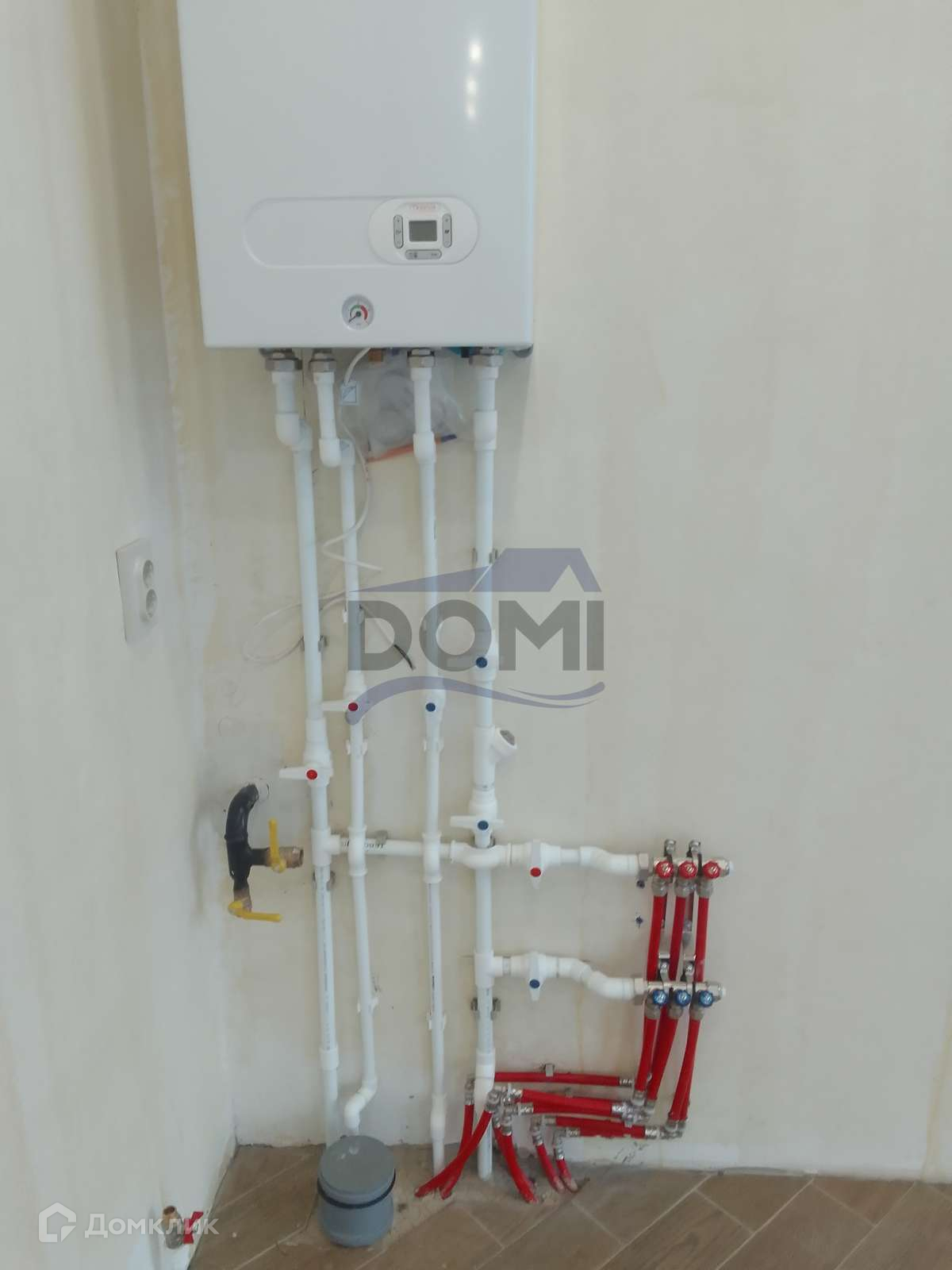 Выложена плитка- кухня- гостиная, прихожая- холл, с/у под плиткой "тёплый пол"