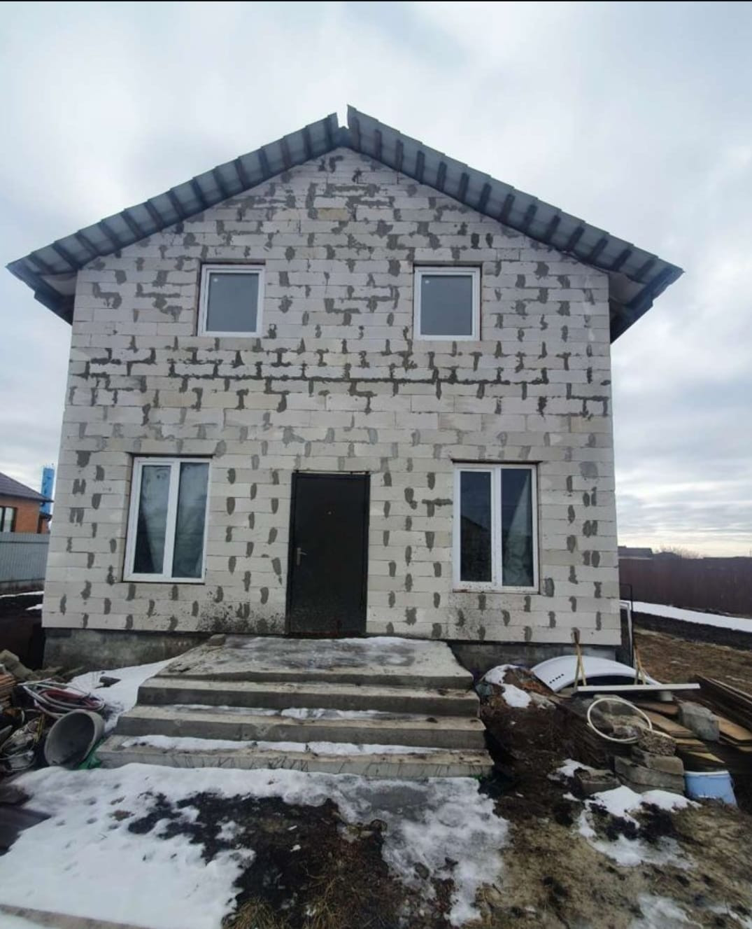 Продам дом в развитом посёлке Комсомольский.  Строили для себя, из аэробела, дом перекрыт плитами ж/б. В доме сделана предчистовая штукатурка. Все коммуникации заведены в дом. Есть двухконтурный котёл Baxsi. Развитая инфраструктура. Рядом остановка общественного транспорта.