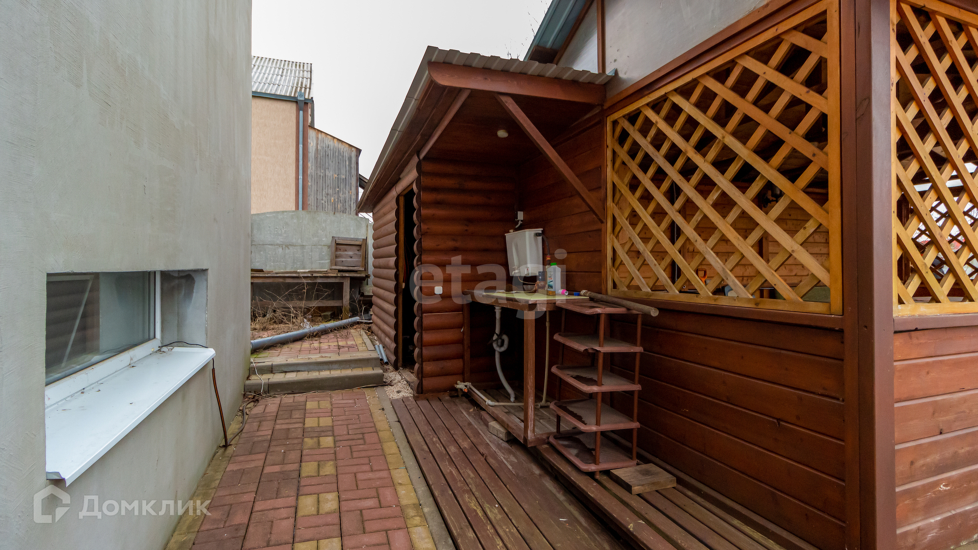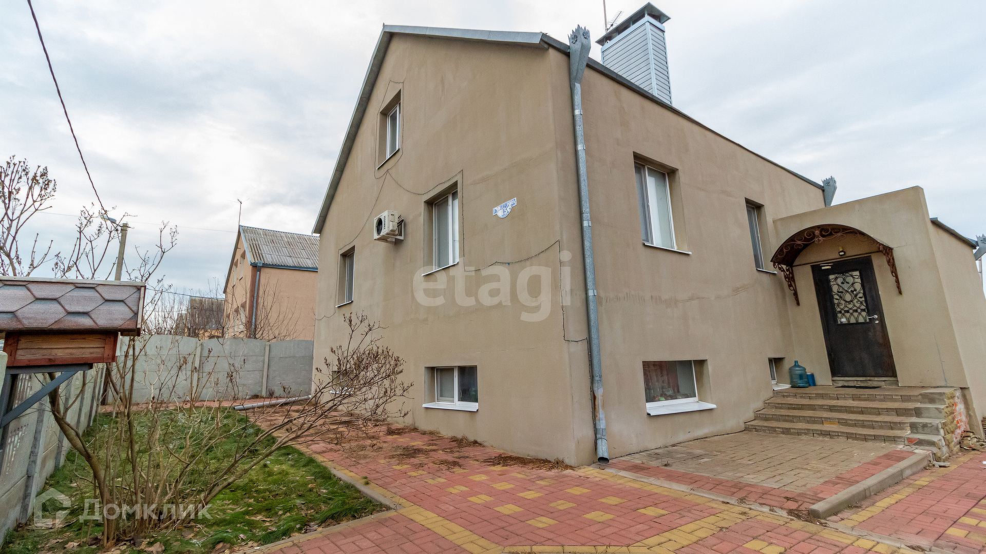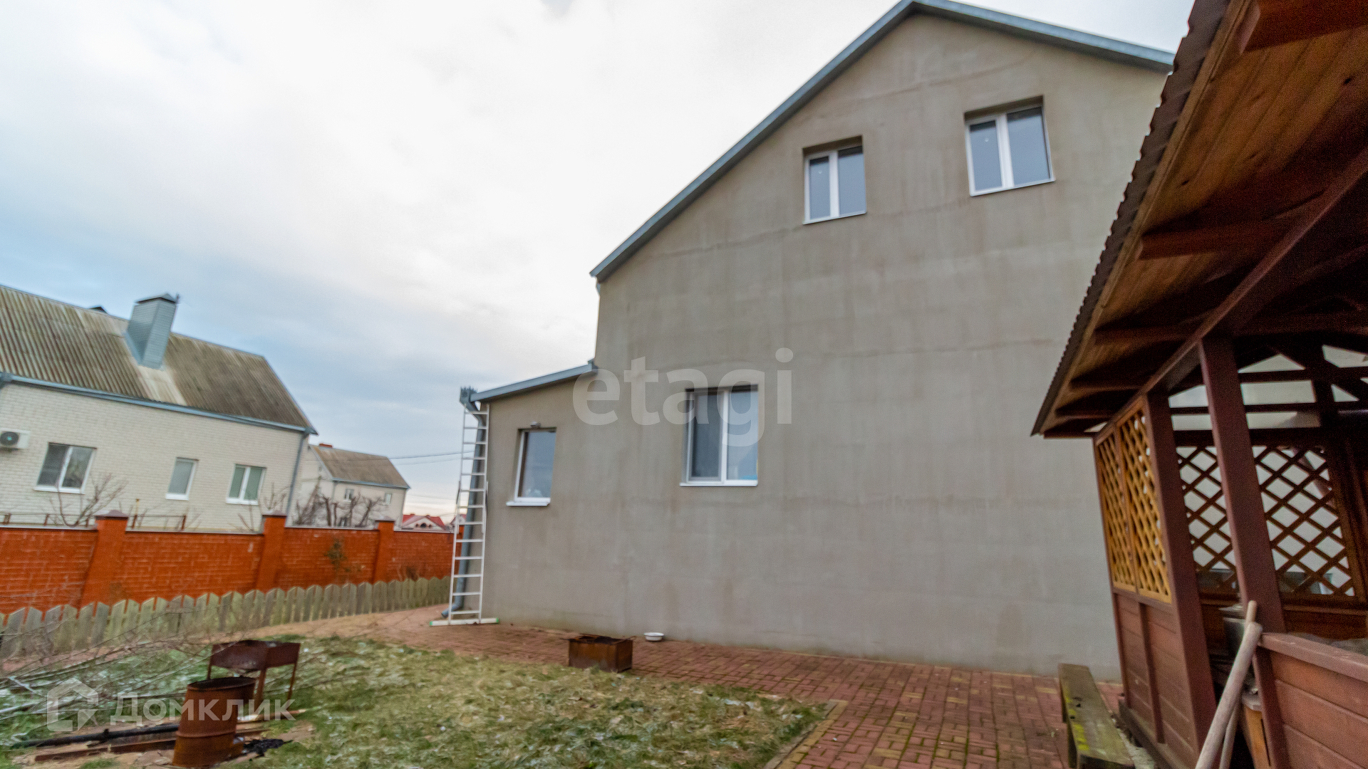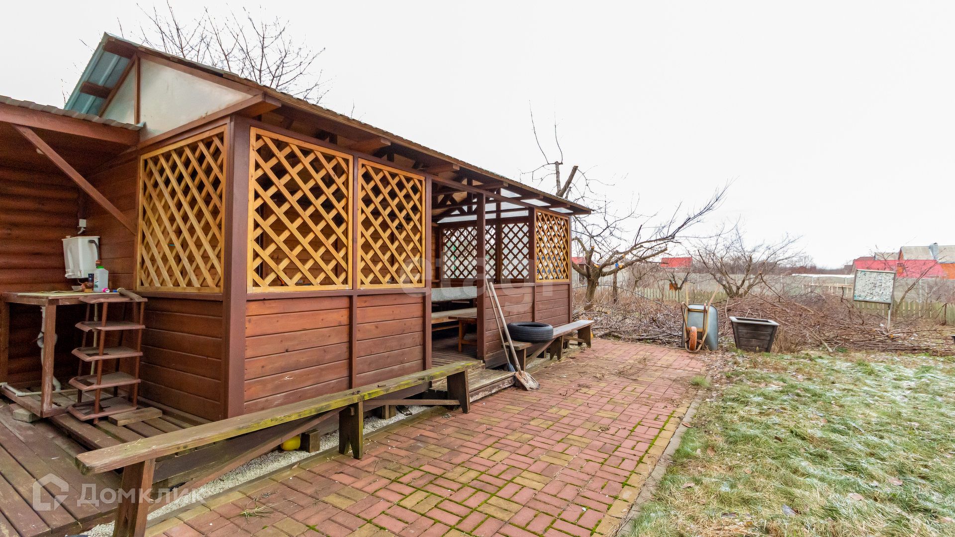 Участок огорожен полностью, отделан плиткой, имеется во дворе большая беседка с техническими помещениями для инструмента и садового инвентаря. Во дворе посажен газон с очагом для костра по середине. Плодоносящий сад: черешня, абрикос, вишня, груша, яблони, алыча, виноград. Проведено водоснабжение для обеспечения полива.