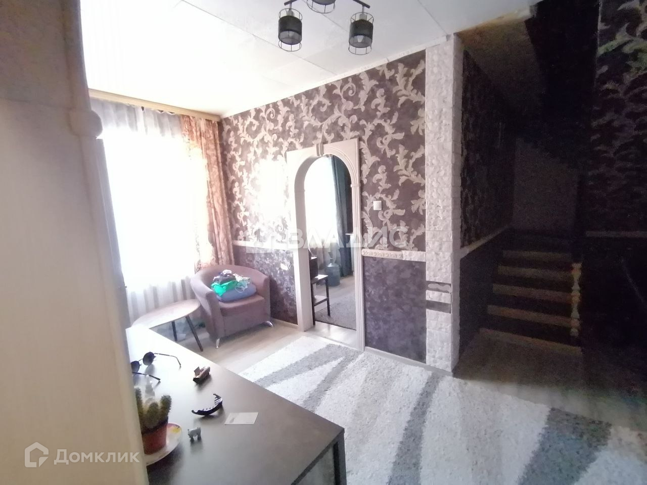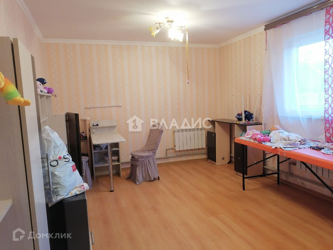 В доме 4 спальни, большой зал 35 м2 ,кухня. коридор, ванна с с/у. Напольное покрытие дома выполнено из линолеума . Стены оклеены обоями, Окна ПВХ. Требуется ремонт , но заехать и жить можно. Хорошие соседи. Инфраструктура: дом расположен в развитом спокойном районе . Удобная транспортная развязка в любую часть поселка .