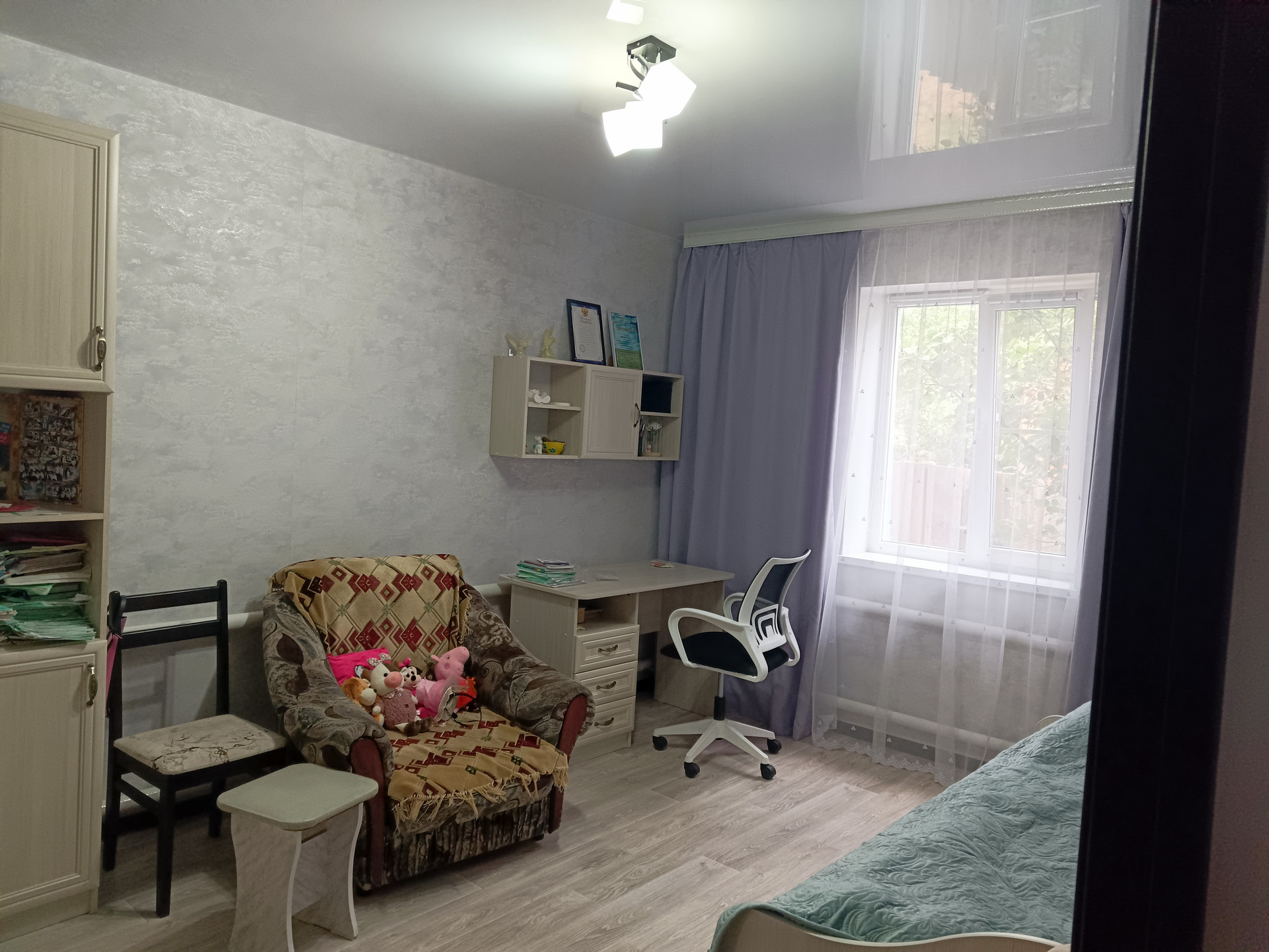 В пешей доступности школы, садики и магазины. Во дворе растут фруктовые деревья.