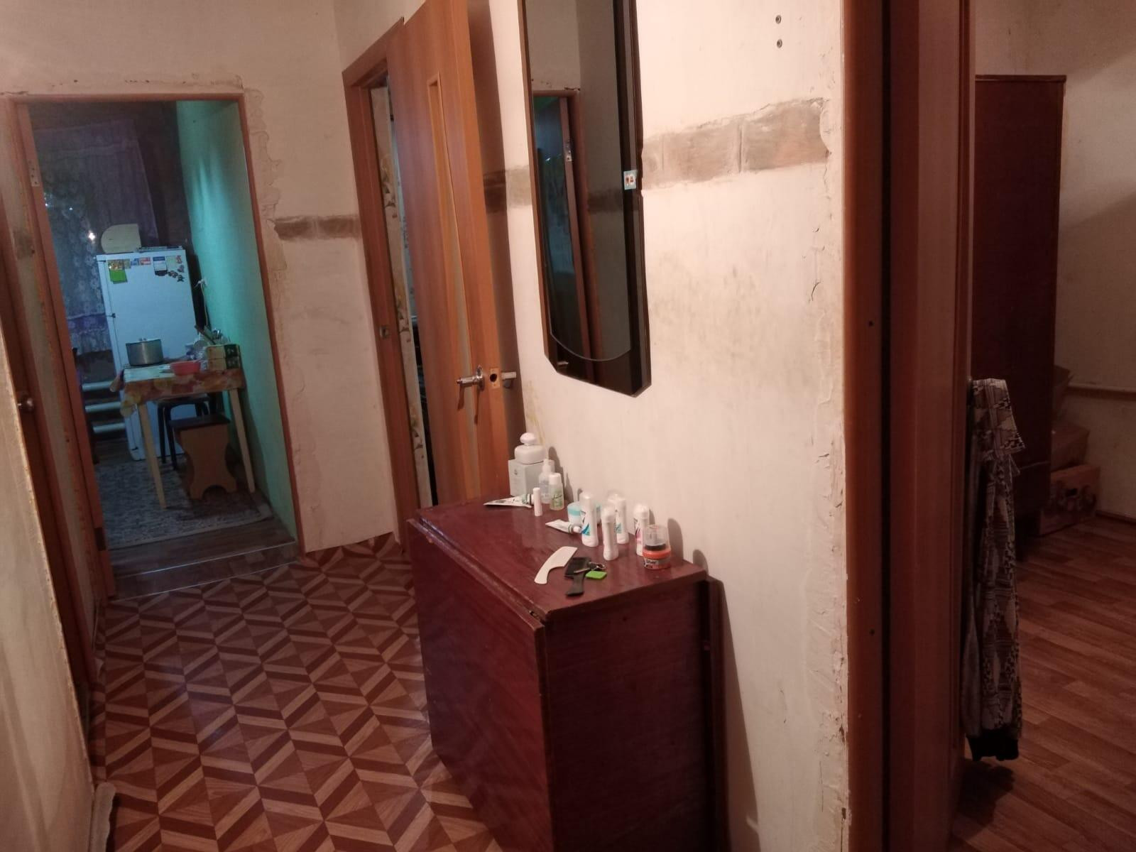 В двух этажном доме на 2м эт. Дом из бутового камня. Имеется застеклённая лоджия(дерево) Отопление центральное.Водоснабжение холодной водой, трубы пластик.Два окна во двор пластик. Одно окно (дерево), с выходом на балкон.Второе окно из кухни,на балкон(Дерево)Счётчики на свет и воду.На газ счётчика нет.Газа нет. Подключат новому хозяину по требованию.Водогрейка. Квартира в меру тёплая.Комнаты изолированные. В доме 8 квартир, соседей нет. Дом жилой. Рядом школа, садик, дом культуры.Магазины в шаговой доступности.Почта.В квартире требуется частичный ремонт.Имеется сарай из пеноблока,земельный участок 1,5 сотки. Место для разведения живности.