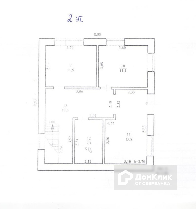 - на втором этаже 3 комнаты, с/у