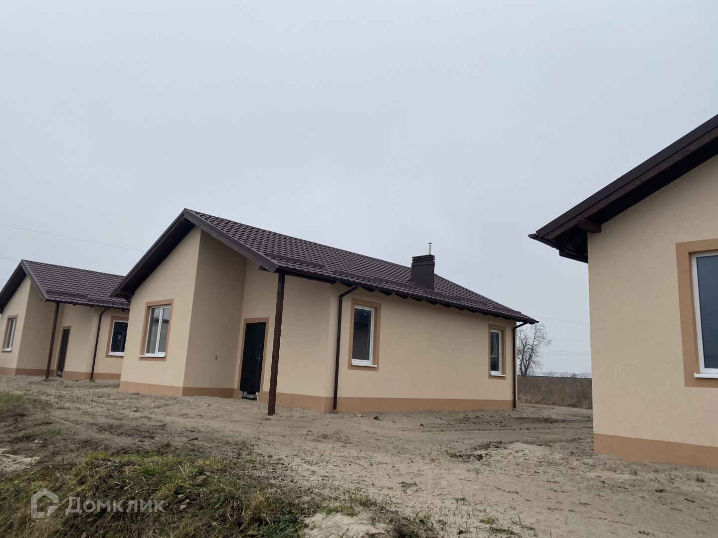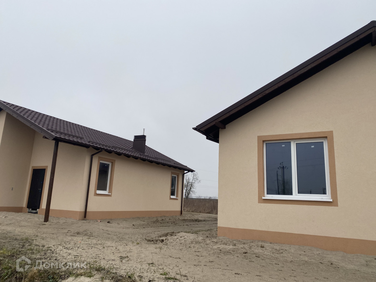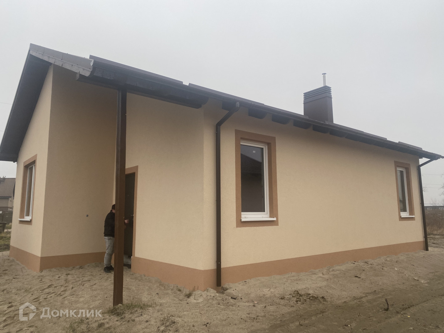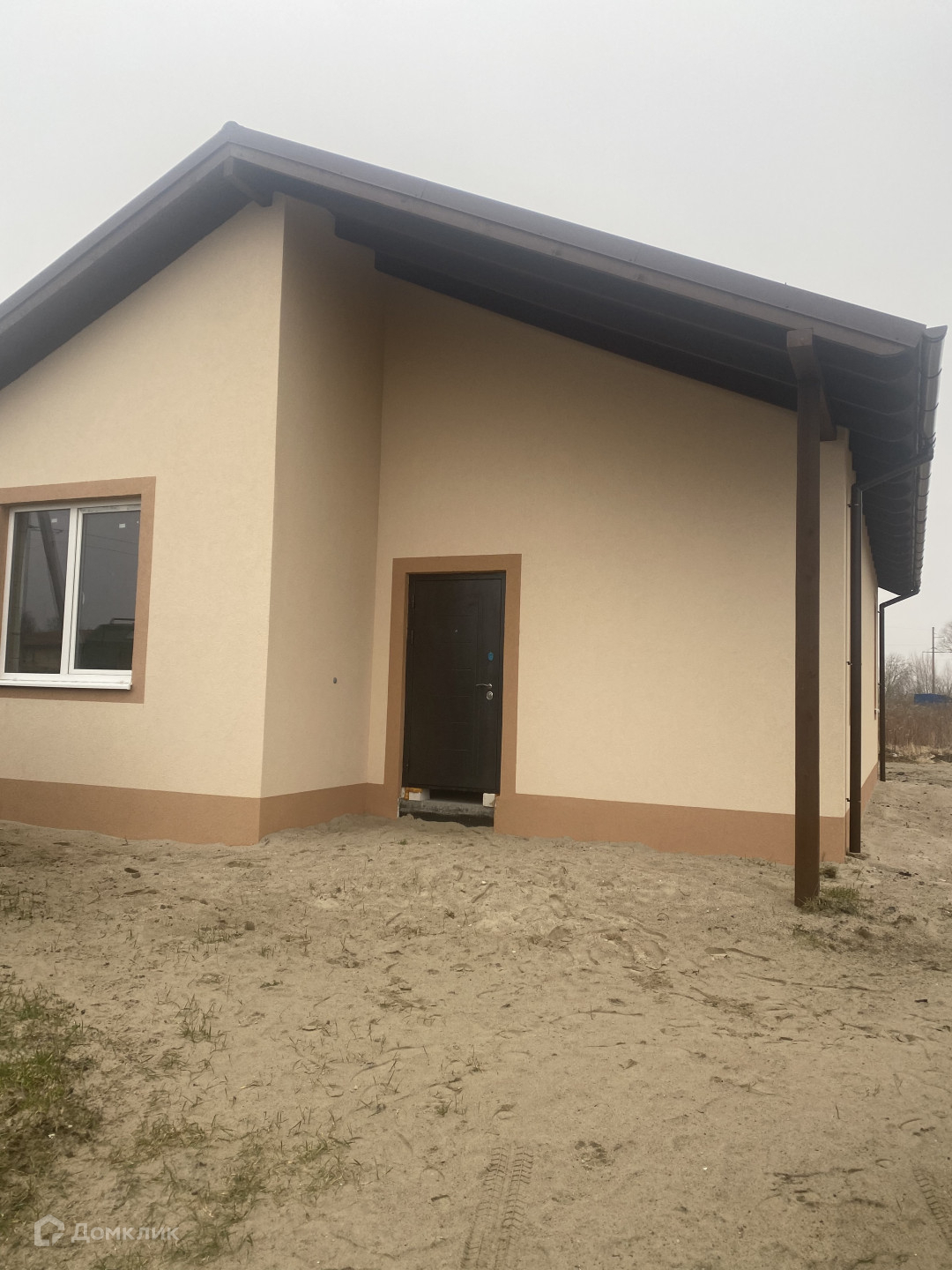 Одноэтажный новый кирпичный дом, здание построено в 2022 году, сейчас идет благоустройство территории,  скоро начинается укладка тротуарной плитки.
