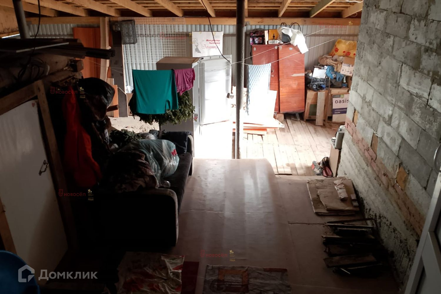 Из мебели остаются: шкаф-купе, кухонный гарнитур и электрическая плита, а также некоторые стройматериалы и садовый инвентарь.