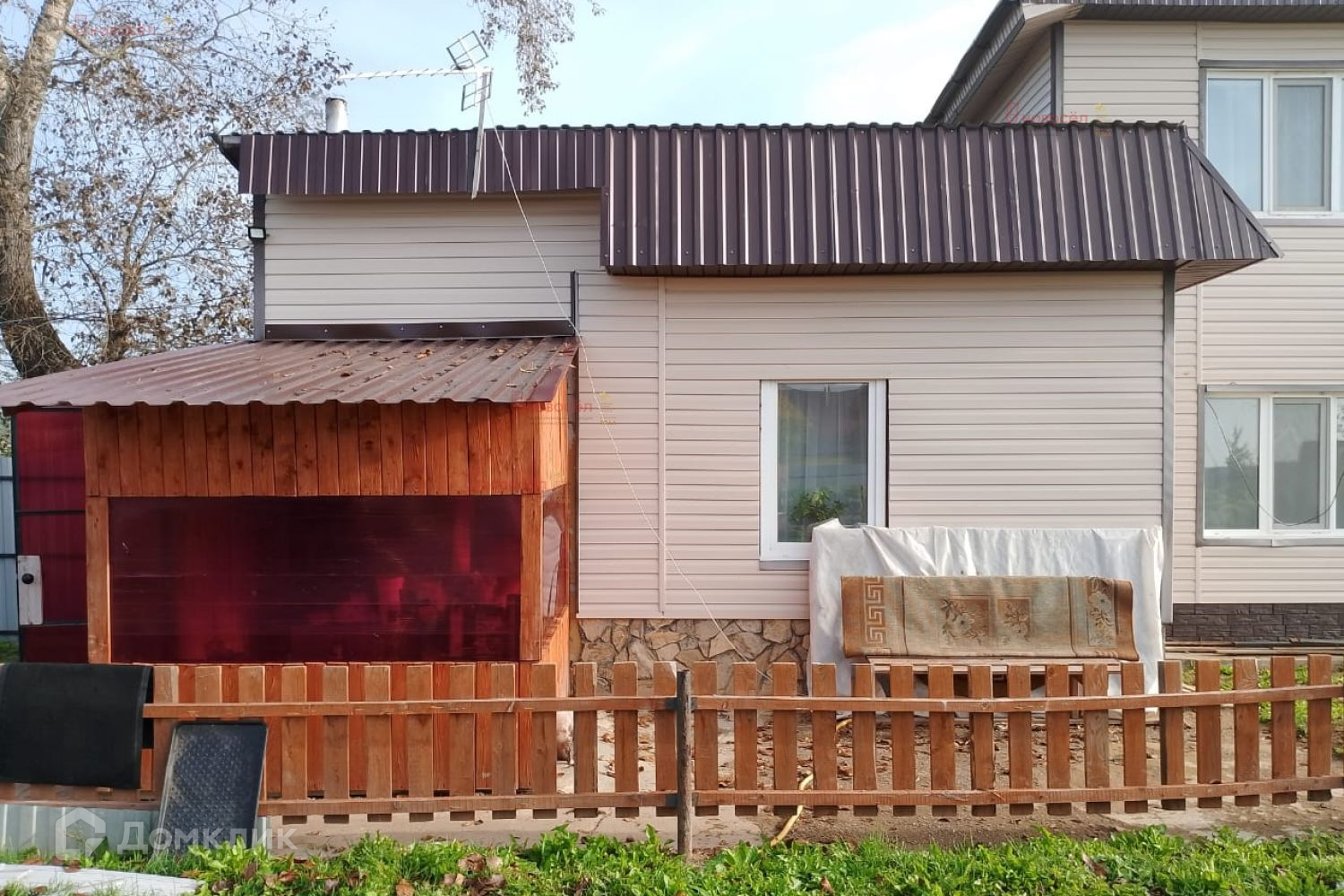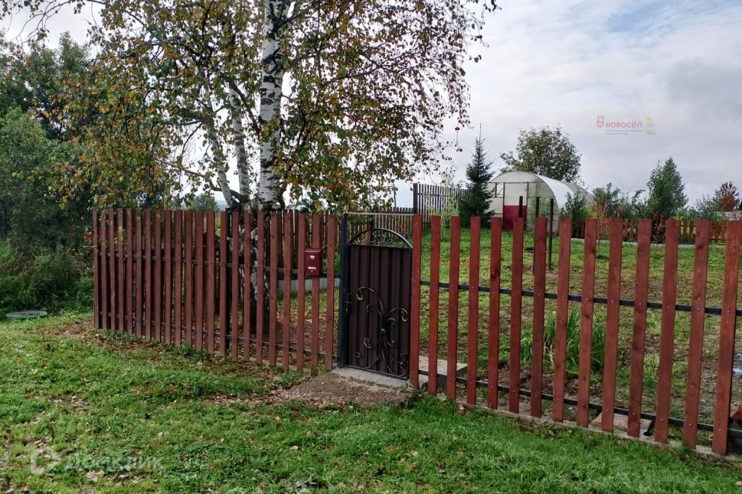 Двухэтажный дом общей площадью 48.9 кв.м, построенный в 2021 году на земельном участке площадью 15.9 соток. Участок полностью разработан и окружен капитальным забором из профнастила с бетонным основанием, что обеспечивает безопасность и уединение от посторонних глаз. Для въезда и выезда машин предусмотрены распашные ворота, дверь калитки украшена узором из кованного металла.