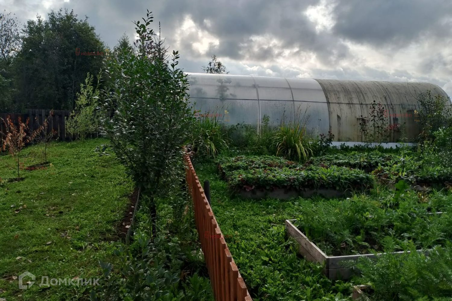 На территории находятся следующие постройки: Баня для отдыха и релаксации, Капитальный гараж, Хлев для содержания скотины, Теплица (длина 8 метров) для выращивания овощей, Погреб, летний туалет и дровяник.