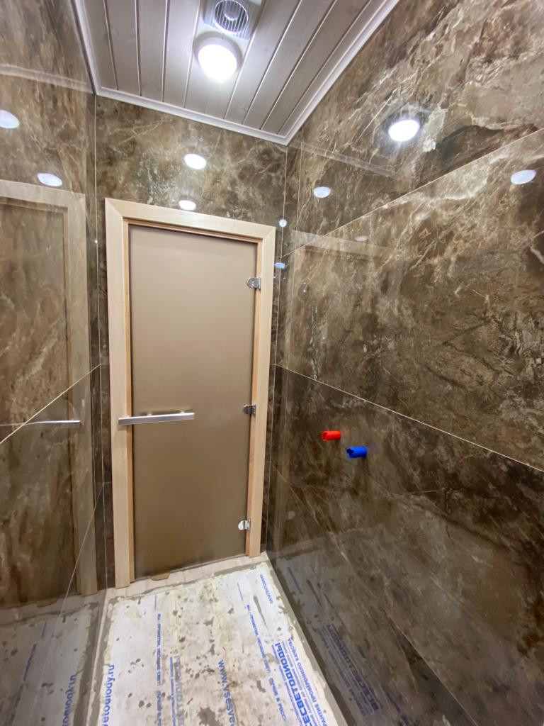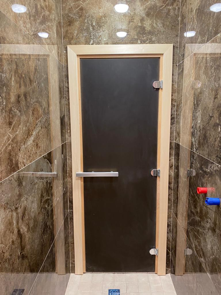 Дверь в парную – стекло бронза прозрачная в санузел - стекло бронза матовое (непрозрачная).