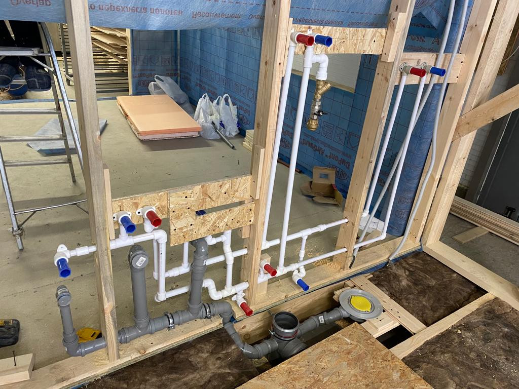 Отделка пола: душевая и парная - гидроизоляция финским гидроизоляционным составом Kiilto Фиберпул в два слоя с армированием углов и стыков упрочняющей лентой Kiilto с облицовкой керамогранитом санузел – облицовка керамогранитом гостиная – износостойкий ламинат 33класс